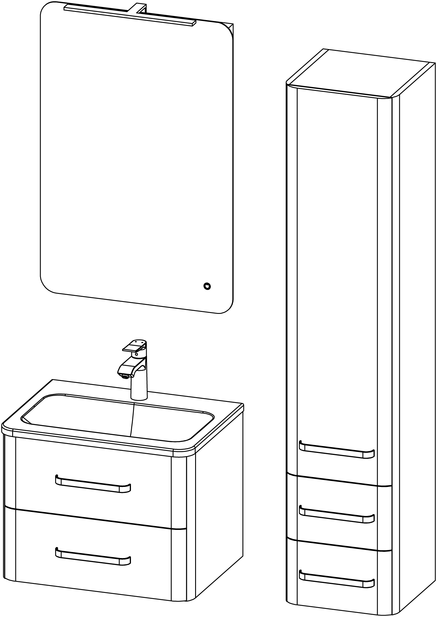 Charm ist ein modernes Badmöbel mit abgerundeten Linien. Es ist mit LED-Beleuchtung, Sensorschaltern, Antibeschlag-Spiegelheizung, Soft-Close-Schubladen und Waschbecken aus gegossenem Marmor ausgestattet. Die Grundfläche wird mit einem Waschbecken geliefert und alle Elemente können nach Wunsch kombiniert werden. Die Elemente aus der Linie Charm sind in der Variante mit silbernen oder eleganten mattschwarzen Griffen erhältlich.