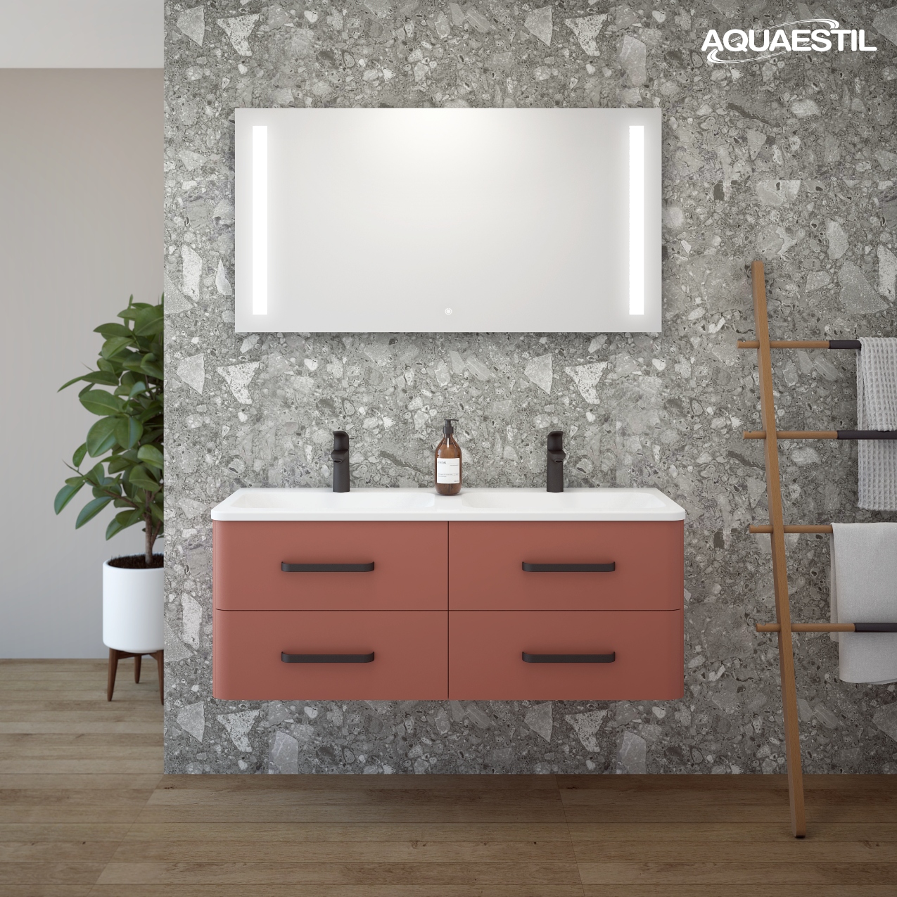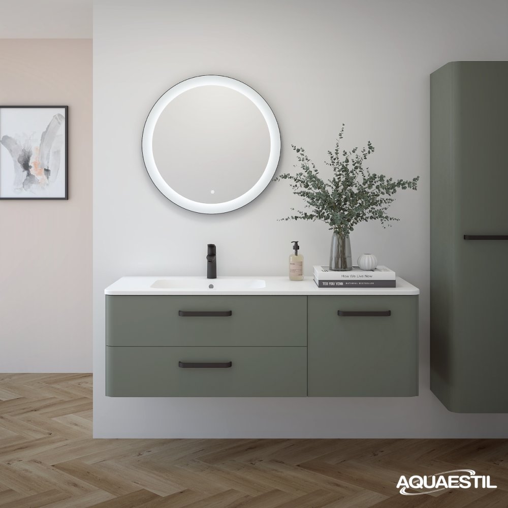Die Waschbecken der Aquaestil Badezimmermöbel bestehen aus Mineralguss oder, in bestimmten Serien, aus Keramik. Für die Reinigung und Pflege der Aquaestil Waschbecken können Sie das Aquaestil Reinigungsmittel für Acryl- und Glasflächen oder ein standardmäßiges Badezimmer-Reinigungsmittel verwenden. Zur Entfernung von Kalk empfehlen wir Essig oder spezielle Mittel zur Kalkentfernung, die keine Mikrogranulate enthalten, die die Oberfläche des Waschbeckens zerkratzen könnten.