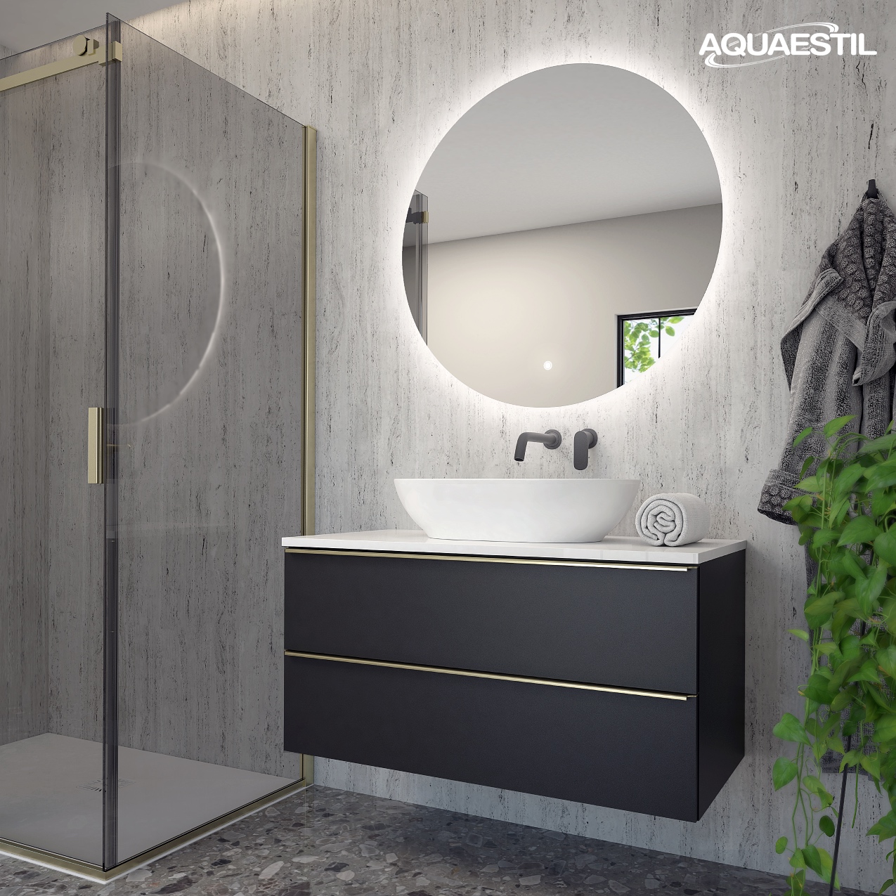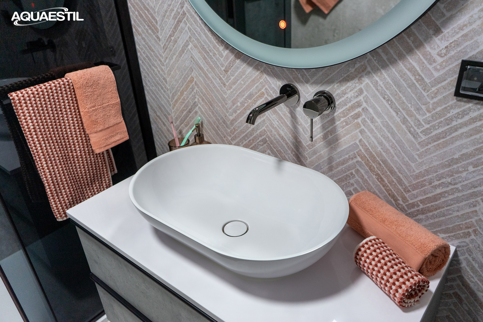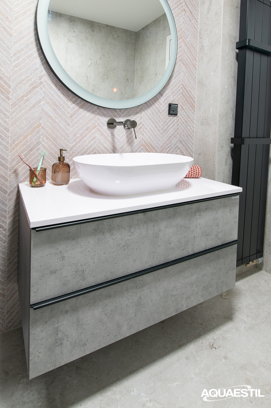 Die Waschbecken der Aquaestil Badezimmermöbel bestehen aus Mineralguss oder, in bestimmten Serien, aus Keramik. Für die Reinigung und Pflege der Aquaestil Waschbecken können Sie das Aquaestil Reinigungsmittel für Acryl- und Glasflächen oder ein standardmäßiges Badezimmer-Reinigungsmittel verwenden. Zur Entfernung von Kalk empfehlen wir Essig oder spezielle Mittel zur Kalkentfernung, die keine Mikrogranulate enthalten, die die Oberfläche des Waschbeckens zerkratzen könnten.