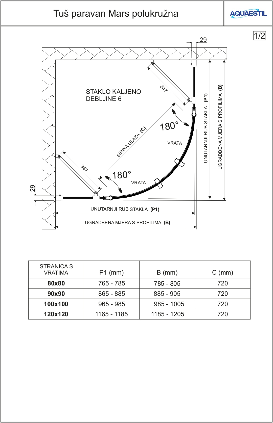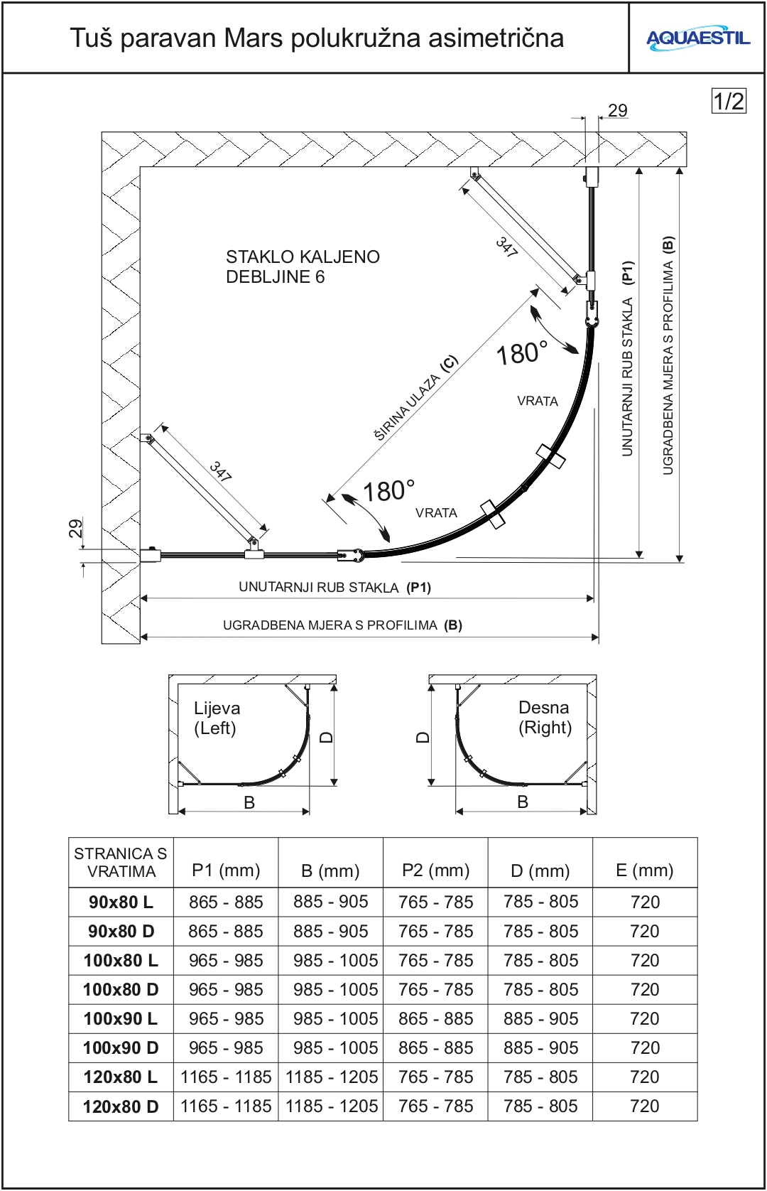 • Maßanfertigung ist für halbkreisförmige Duschabtrennungen nicht verfügbar.