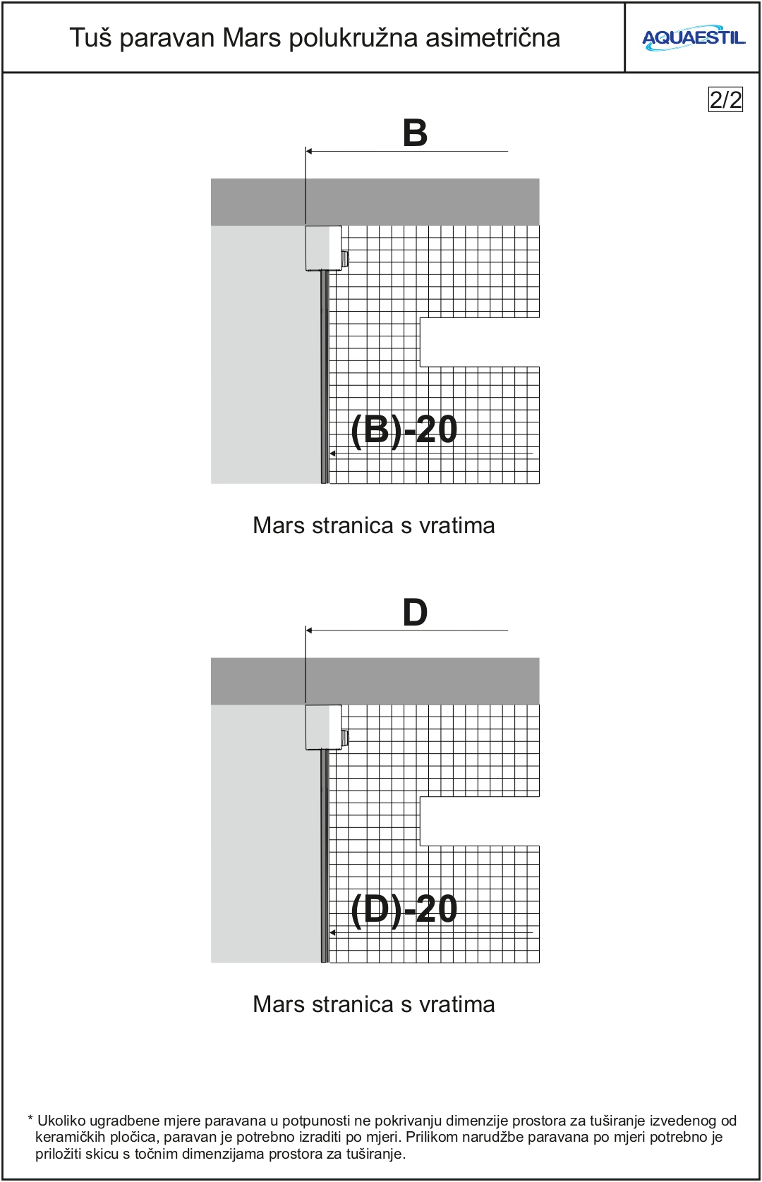 Bei der Bestellung einer Duschwand zur Installation auf Keramikfliesen ist es erforderlich, eine einfache Skizze mit genauen Maßen des Duschbereichs vorzulegen.
