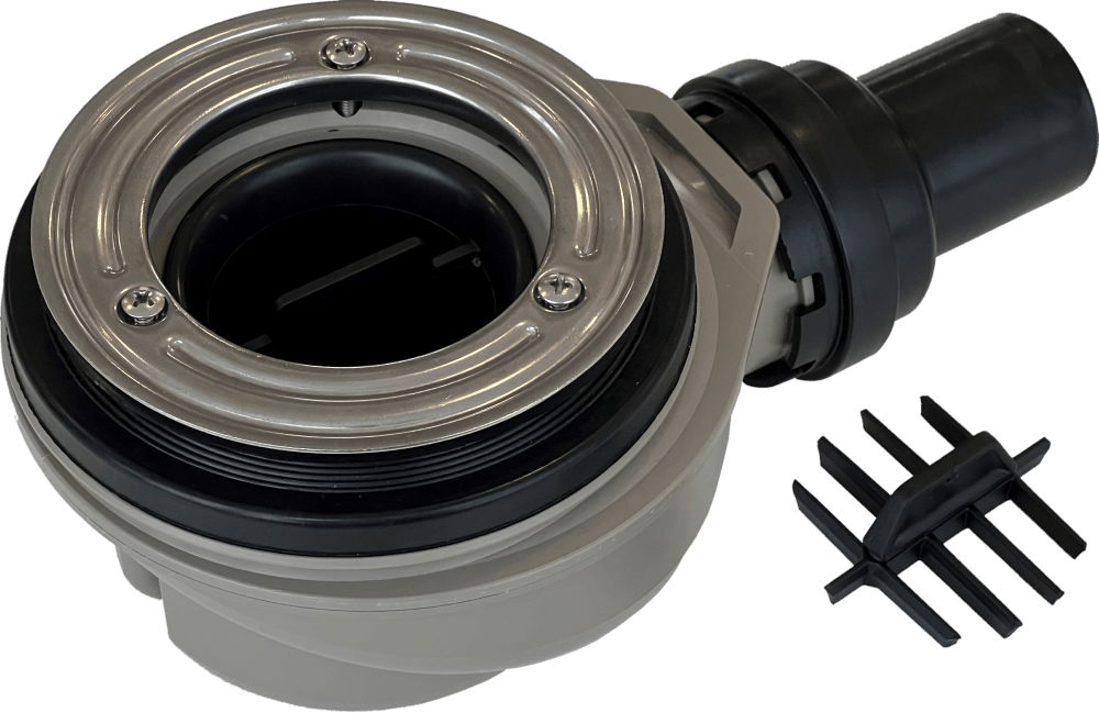 Siphon by Geberit designed for showers with its own siphon cover. Compatible with Stone, Stone DeLuxe, Tempo DeLuxe, Teso DeLuxe, Shiny shower trays. Comes with a removable comb insert.