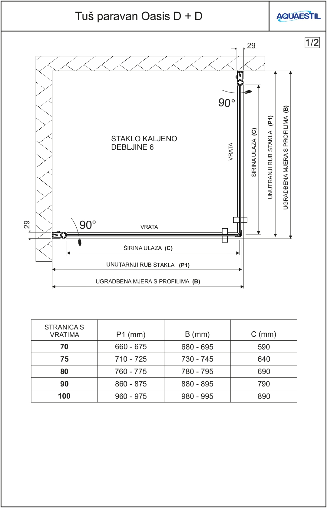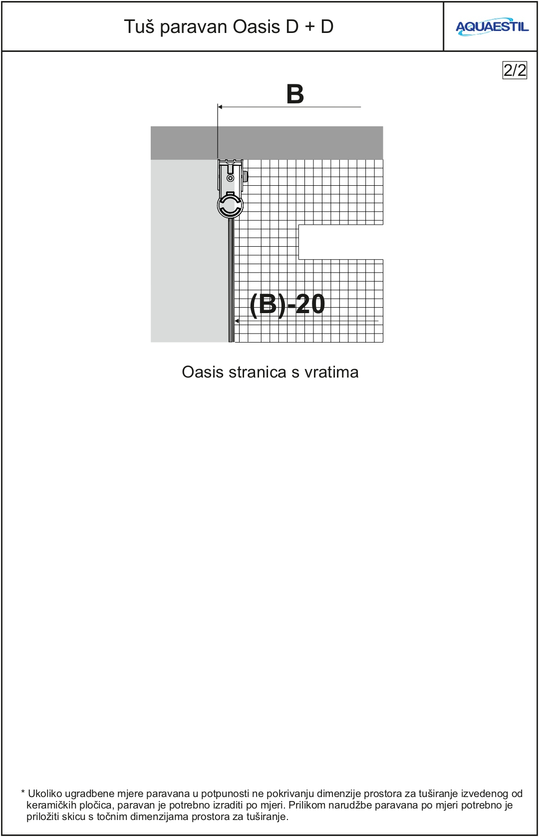 - If the screen is intended to be installed on tiles and not to the shower tray, the order has to include a drawing with exact dimensions of the showering area.