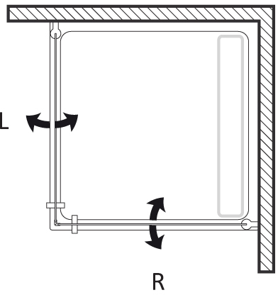 Oasis D+D is a modern glass shower screen with two hinged doors characterized by its elegant round profiles. Its 200 cm height makes it compatible with modern ultra-flat shower trays. When ordered with relief glass, orientation of each screen side must be taken into consideration (L or R). Doors can be opened in both directions.