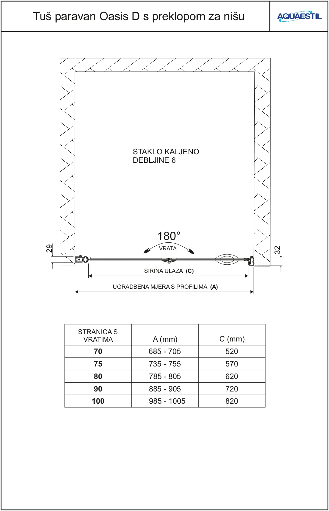 The glass surfaces of all Aquaestil shower screens undergo a factory treatment with an anti-limescale coating that provides additional protection against the accumulation of limescale and dirt, making everyday cleaning and maintenance of the shower space easier. This technology involves the application of nanoparticles with components that firmly adhere to the glass surface, repelling other substances such as water, various oils, dirt, insects and limescale residue. Following the treatment, the glass becomes more resistant to friction, and the nanoparticles maintain their effectiveness on the surface for a significant period, without the need for repeated treatment.