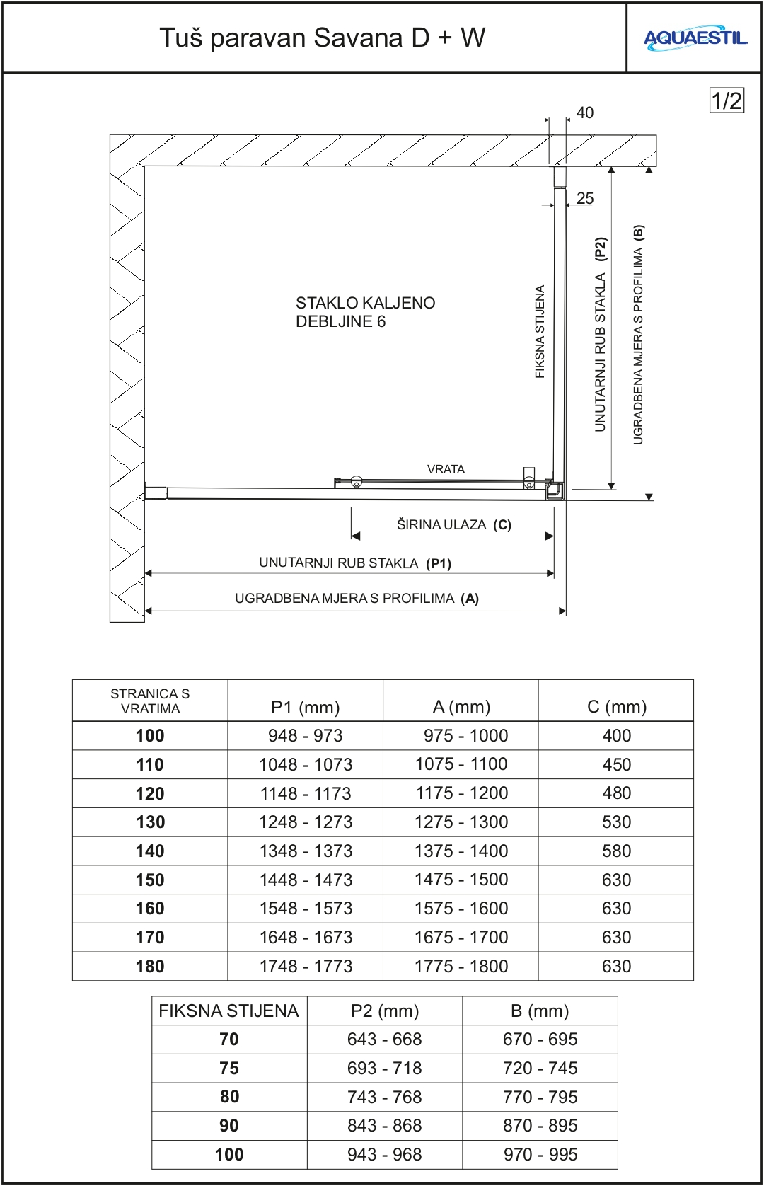 When ordering a shower screen for installation on ceramic tiles, it is necessary to provide a simple sketch with accurate measurements of the shower space.