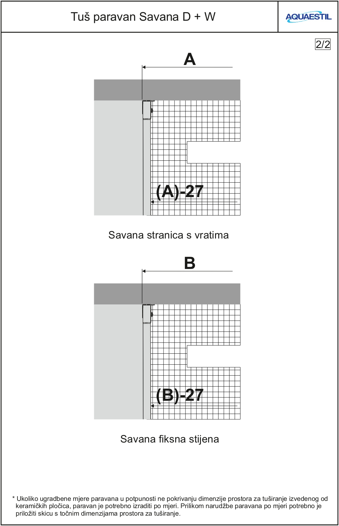 • If the screen is intended to be installed on tiles and not to the shower tray, the order has to include a drawing with exact dimensions of the showering area.