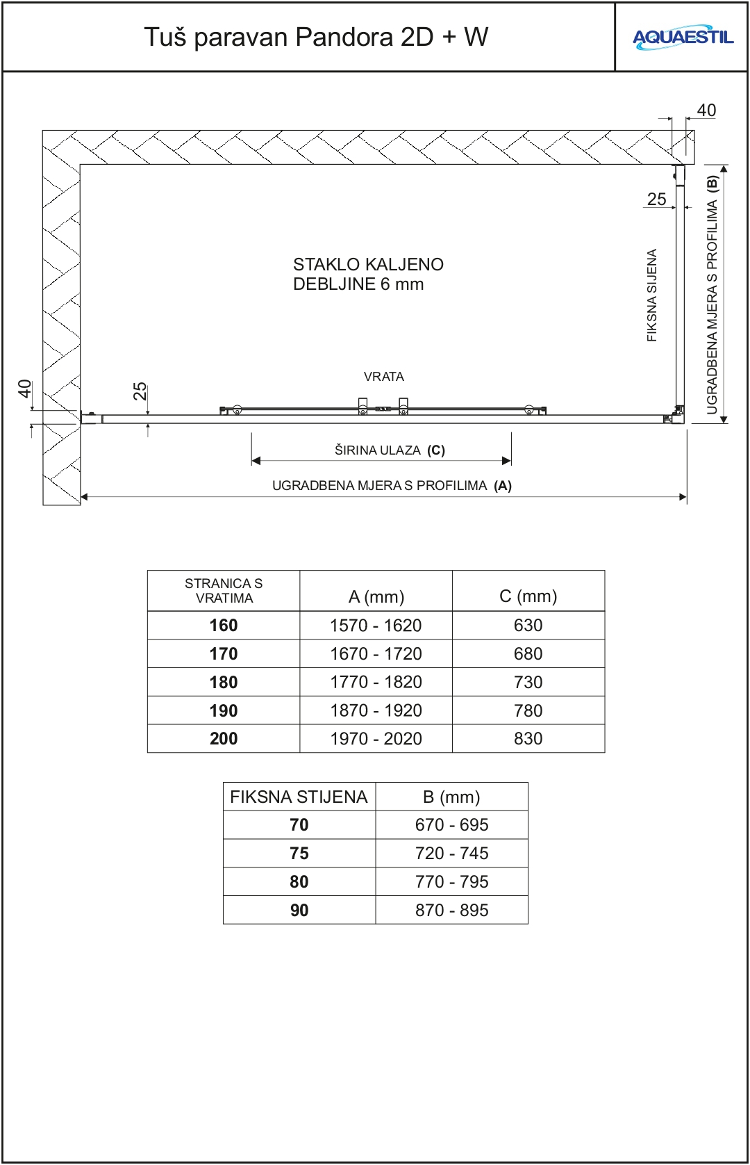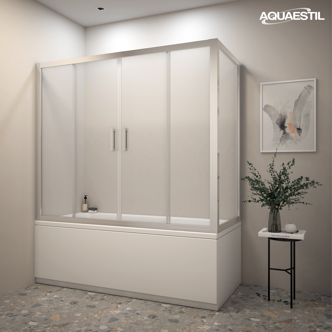This modern bath screen is intended for installation on rectangular bathtubs located between two walls. It consists of a fixed wall for a shorter bathtub side and a side with double sliding doors. Due to its height and sealing, bath screen Pandora 2D + W completely eliminates splashing of water outside the bathtub, and is an elegant addition to every bathroom due to its modern design and functionality.