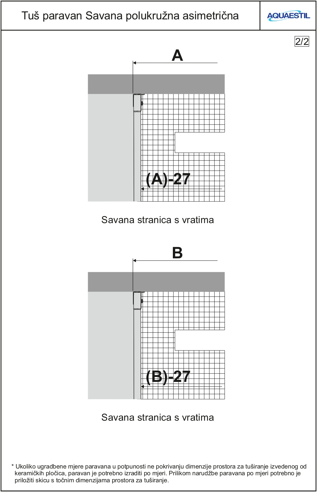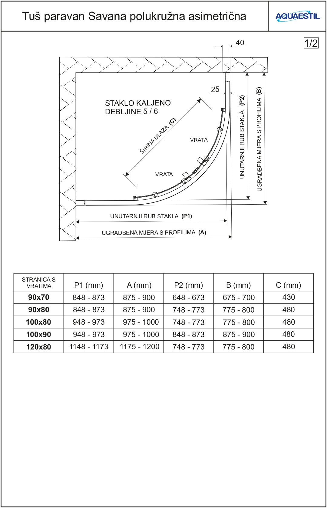 - Custom-tailored dimensions are not available for semicircular shower screens.