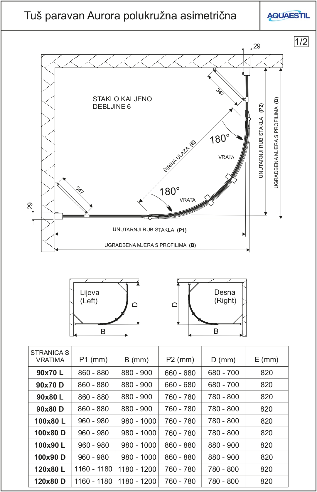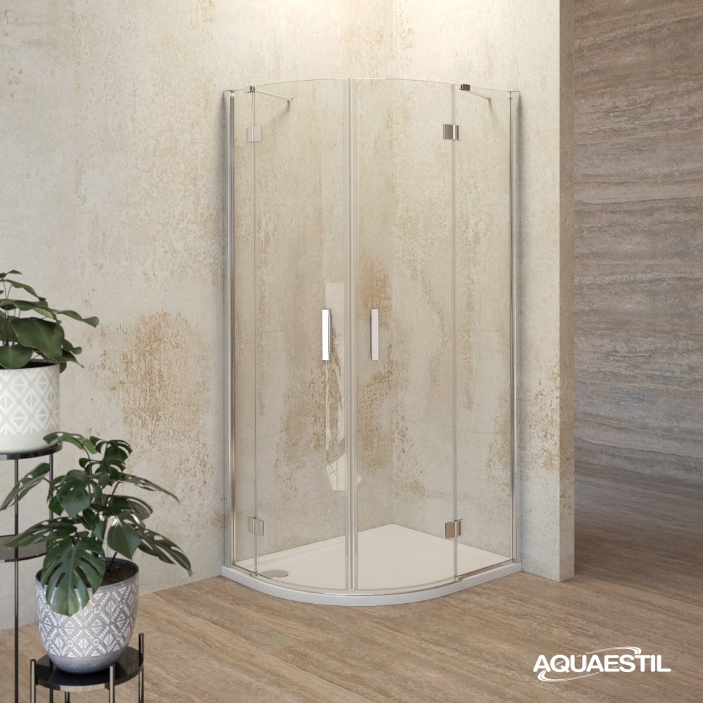 The asymmetrical semicircular version of the modern Aurora glass screen is intended for installation on the semicircular asymmetrical version of the Teso shallow shower tray or on ceramic tiles. Tempered glass 6 mm thick, revolving doors with lift system and quality magnet seals and a protective strip at the junction of the door and the shower ensure maximum functionality.