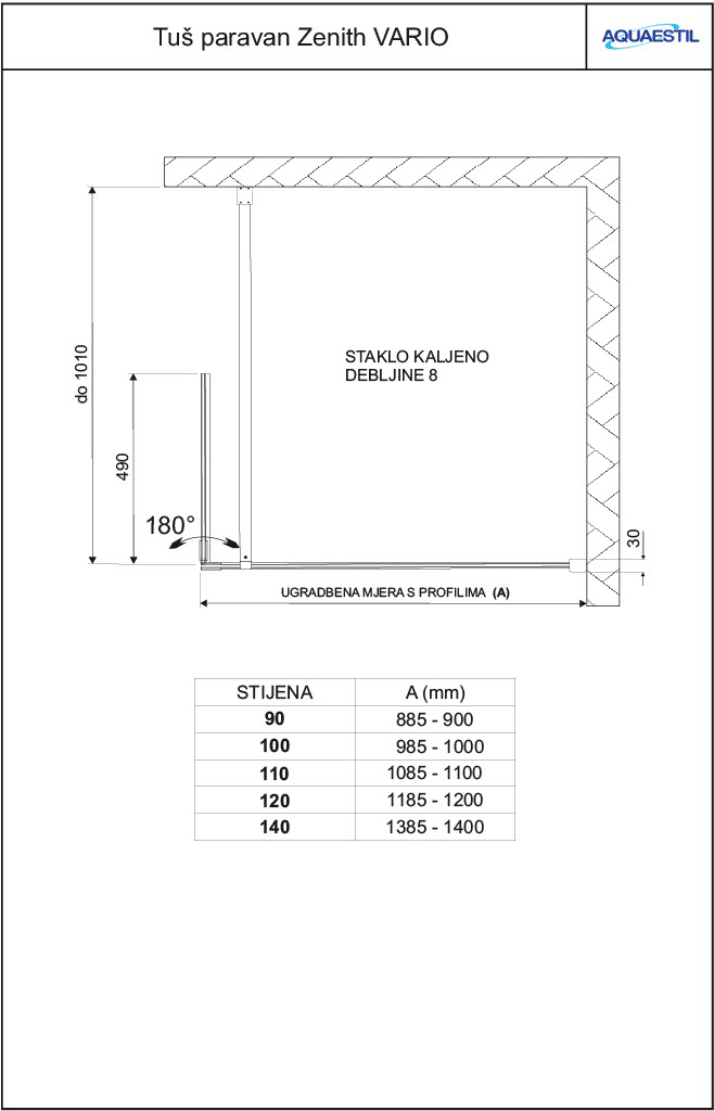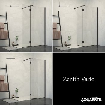 A shower screen that consists of a fixed glass wall and a rotating part that can be rotated by 180° with three stop points. Zenith Vario provides better splash protection outside the shower area compared to a classic fixed glass wall and is an ideal complement for even smaller "walk-in" shower areas.