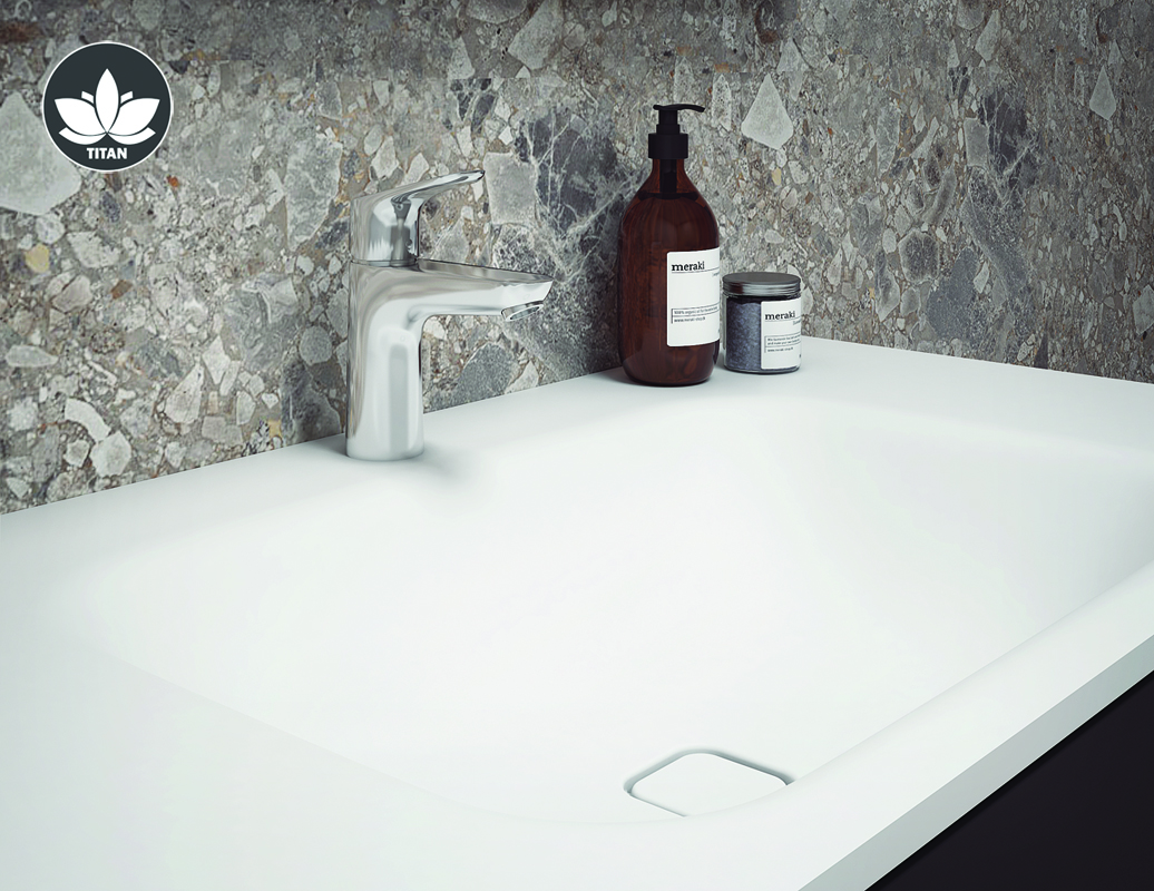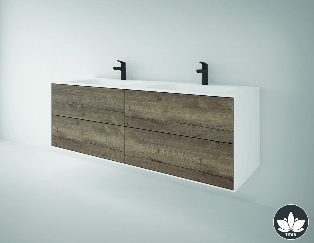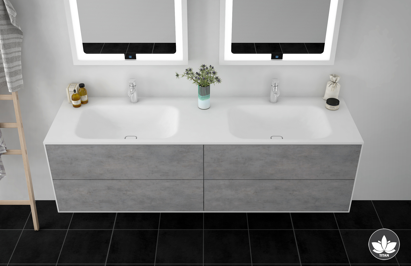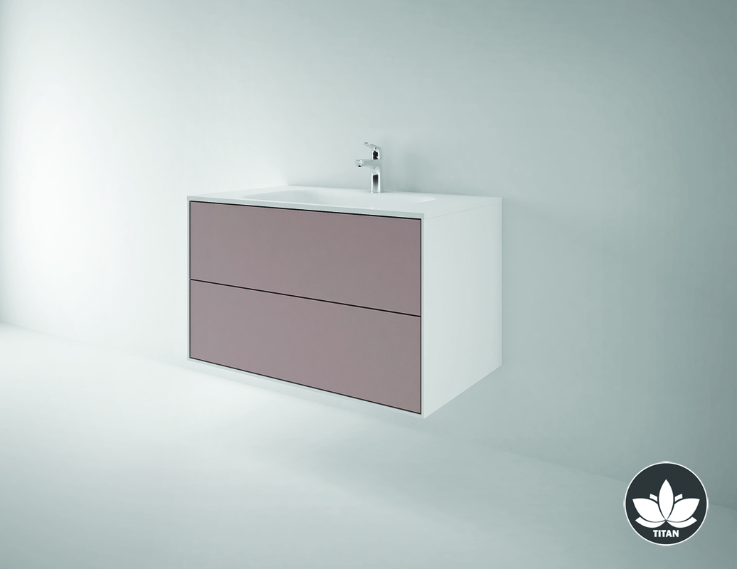 The Titan II premium bathroom furniture consists of a single or double basin and a vanity unit made of the ASTONE composite material, with a front comprising two or four drawers available in a variety of colours and styles.