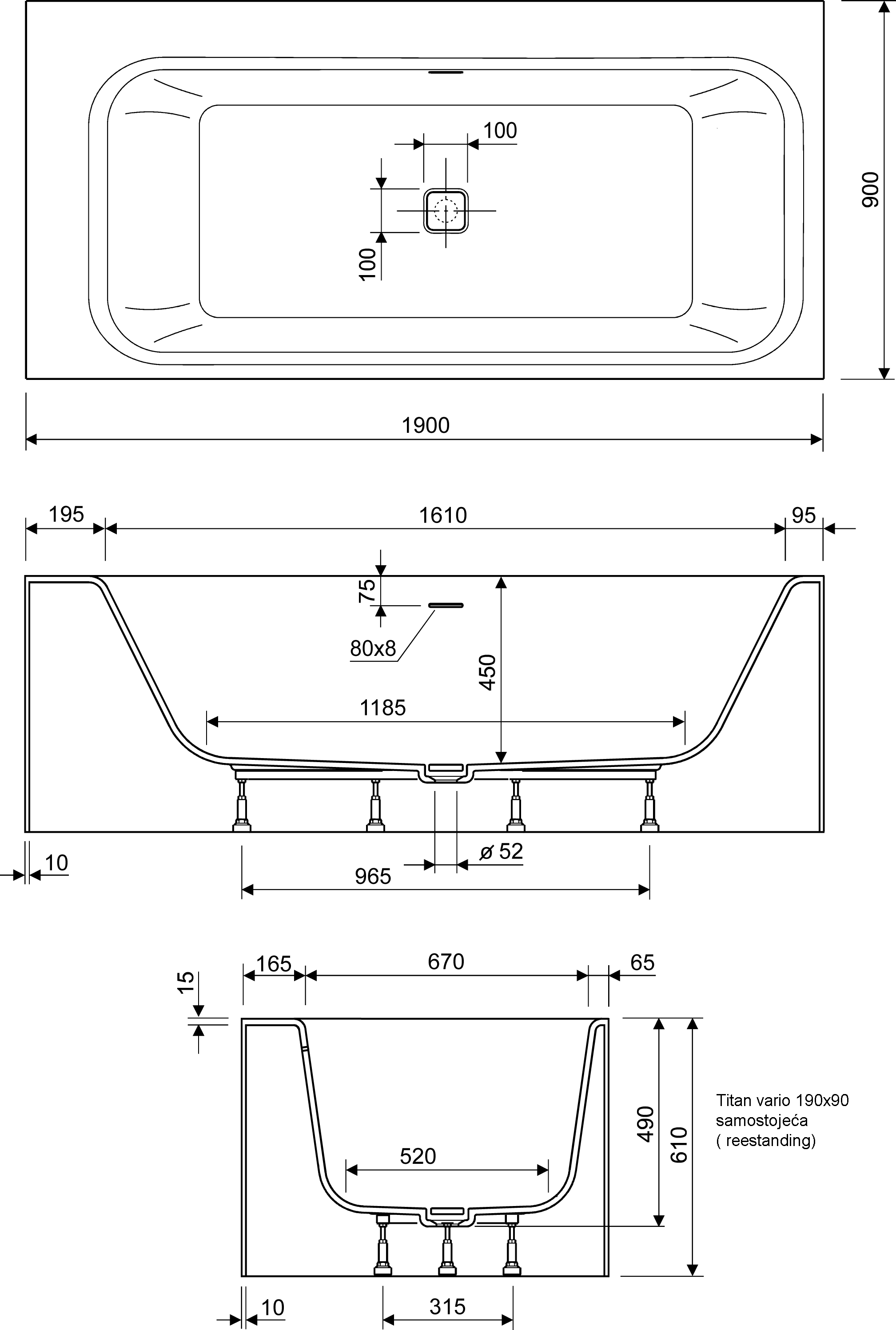 The Titan vario bathtub can be custom-made to fit into your spatial configuration. Titan vario central, wall, corner, and the built-in version are only some of this product’s versions.