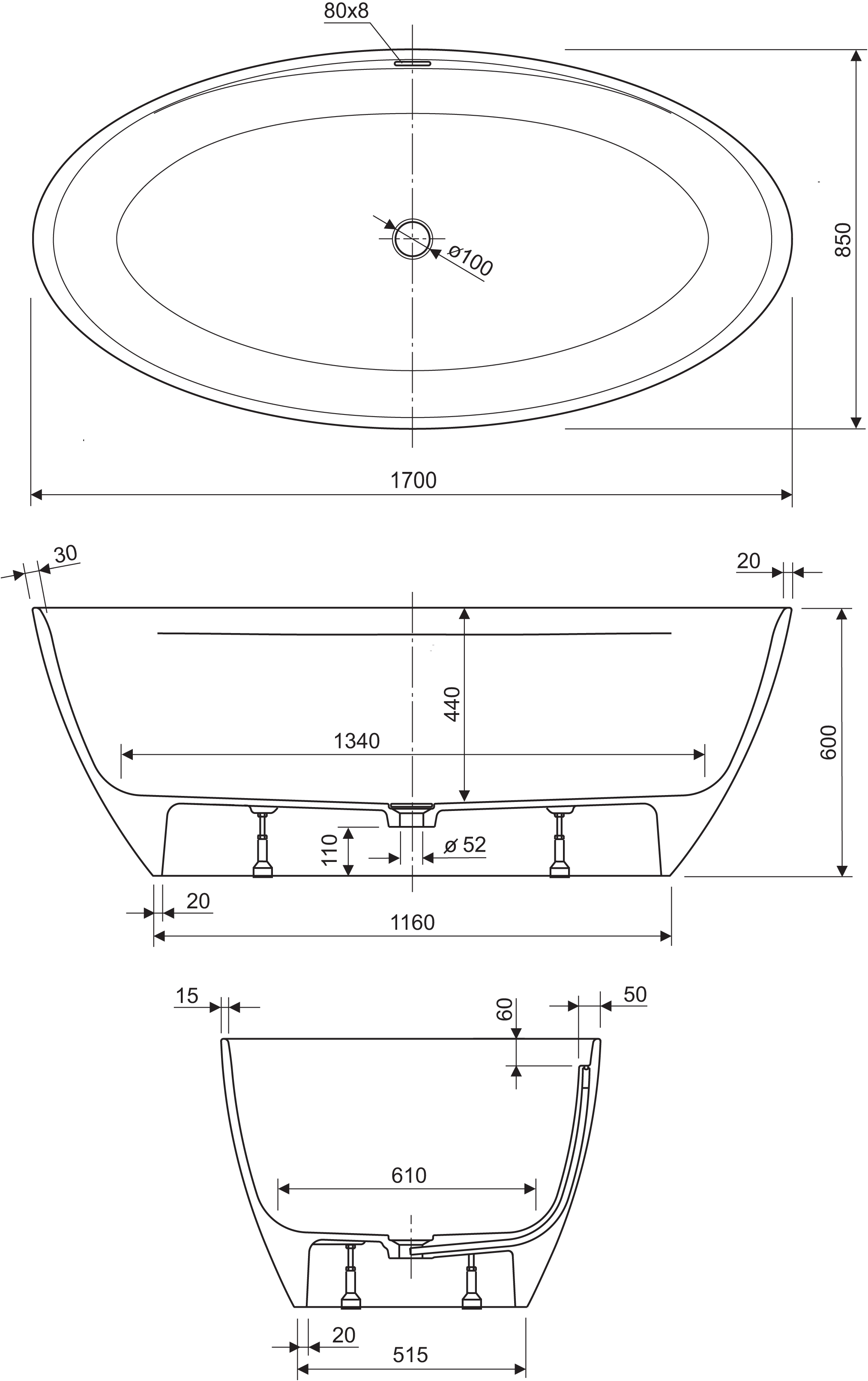 Titan Oval Freestanding bathtub