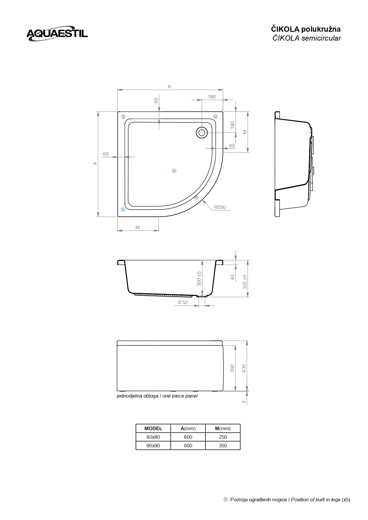 Trideset centimetara duboka polukružna tuš kada Čikola izvanredna je zamjena za standardnu kupaonsku kadu u manjim kupaonicama.