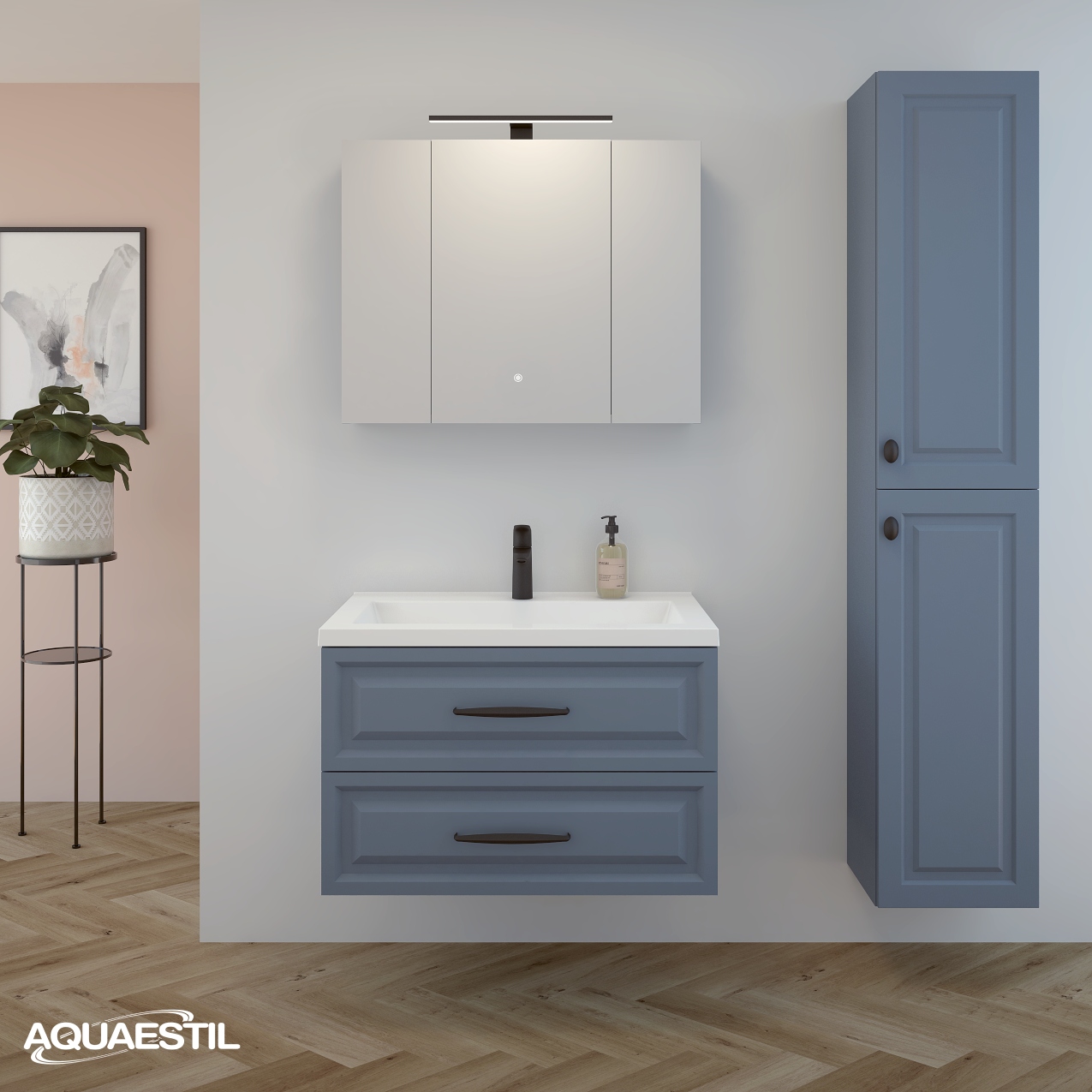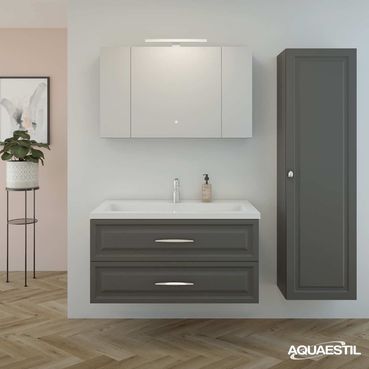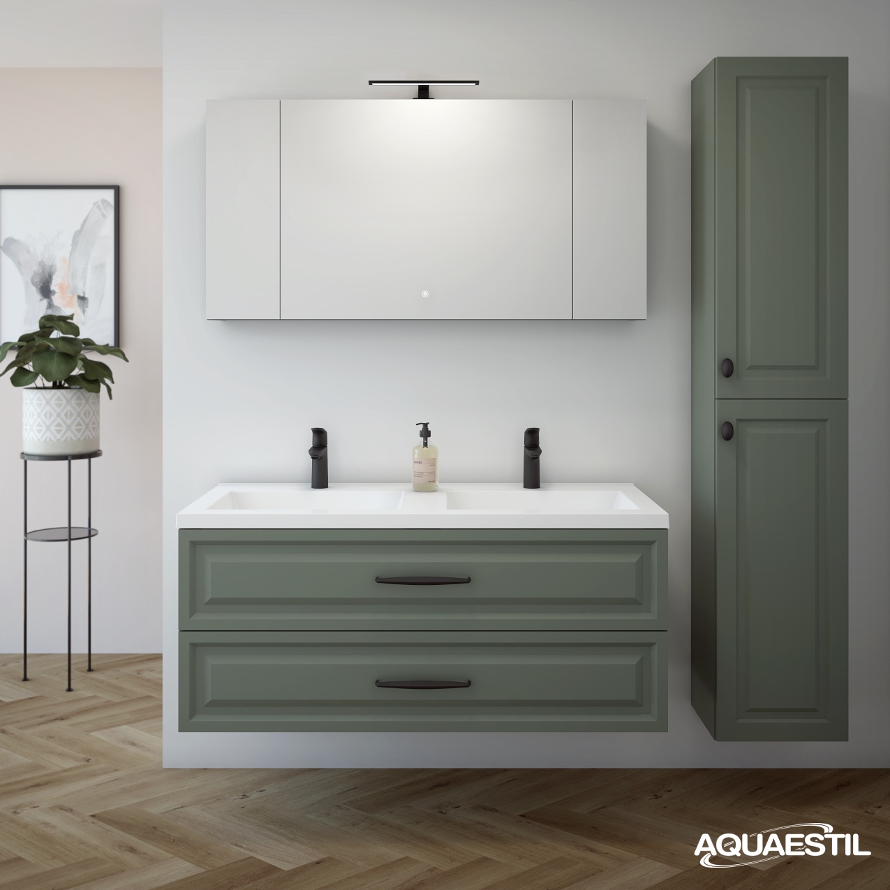 Il materiale dei mobili da bagno Aquaestil è resistente all'umidità, ma non completamente impermeabile. L'esposizione prolungata a livelli elevati di umidità e acqua può causare il rigonfiamento dei bordi delle parti in legno dei mobili e la possibile corrosione degli specchi.