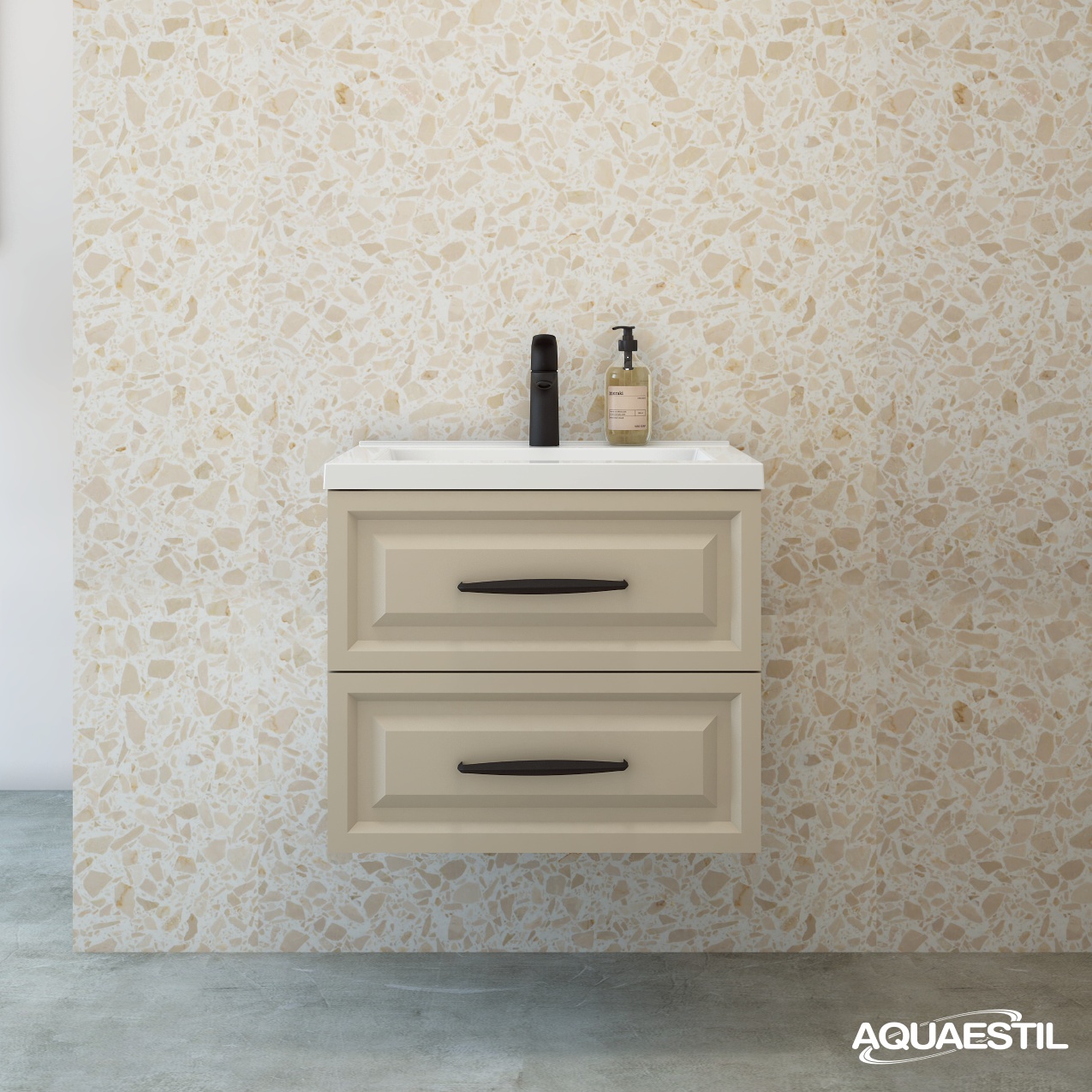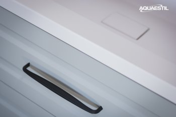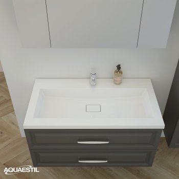 I lavabi dei mobili da bagno Aquaestil sono realizzati in ghisa minerale o, in alcune linee, in ceramica. Per la pulizia e la manutenzione dei lavabi Aquaestil, è possibile utilizzare la Aquaestil agente per la pulizia delle superfici in acrilico e vetro o un detergente liquido standard per il bagno. Per rimuovere il calcare, si consiglia di utilizzare aceto o prodotti specifici per la rimozione del calcare che non contengono microgranuli, in grado di graffiare la superficie del lavabo.