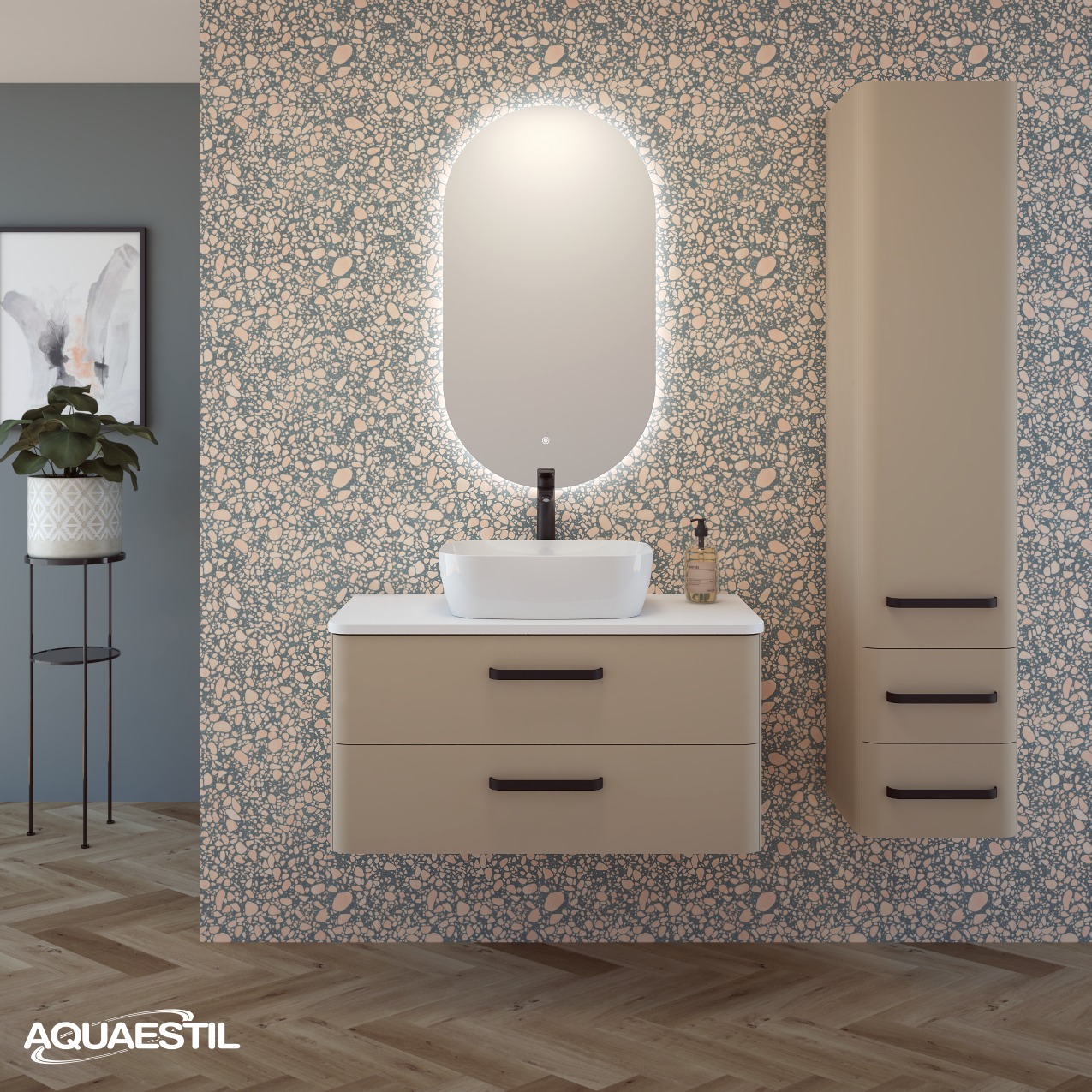 Il materiale dei mobili da bagno Aquaestil è resistente all'umidità, ma non completamente impermeabile. L'esposizione prolungata a livelli elevati di umidità e acqua può causare il rigonfiamento dei bordi delle parti in legno dei mobili e la possibile corrosione degli specchi.