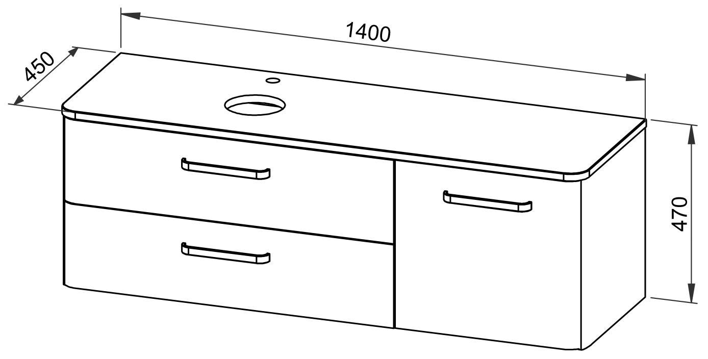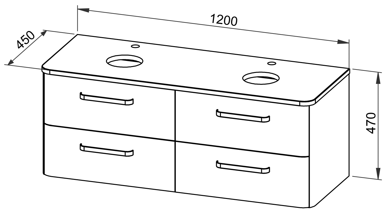 - I mobili base Charm Top sono fornite di serie con piani in ghisa minerale predisposti per lavabi da appoggio TOP 45. I piani possono anche essere forniti senza fori per lavabo e rubinetteria o con fori in posizioni diverse secondo lo schema fornito durante il processo d’ordine.