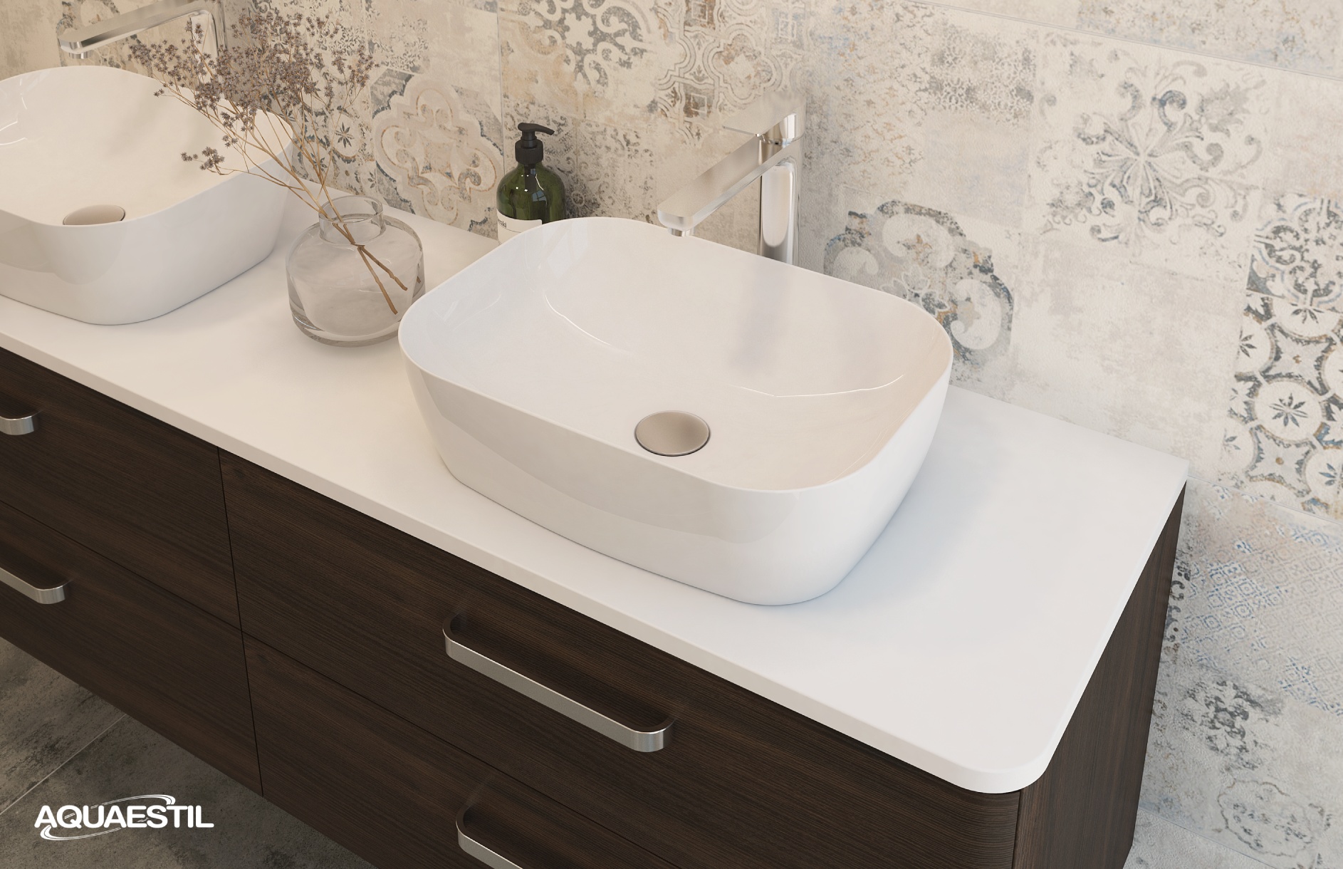 I lavabi dei mobili da bagno Aquaestil sono realizzati in ghisa minerale o, in alcune linee, in ceramica. Per la pulizia e la manutenzione dei lavabi Aquaestil, è possibile utilizzare la Aquaestil agente per la pulizia delle superfici in acrilico e vetro o un detergente liquido standard per il bagno. Per rimuovere il calcare, si consiglia di utilizzare aceto o prodotti specifici per la rimozione del calcare che non contengono microgranuli, in grado di graffiare la superficie del lavabo.