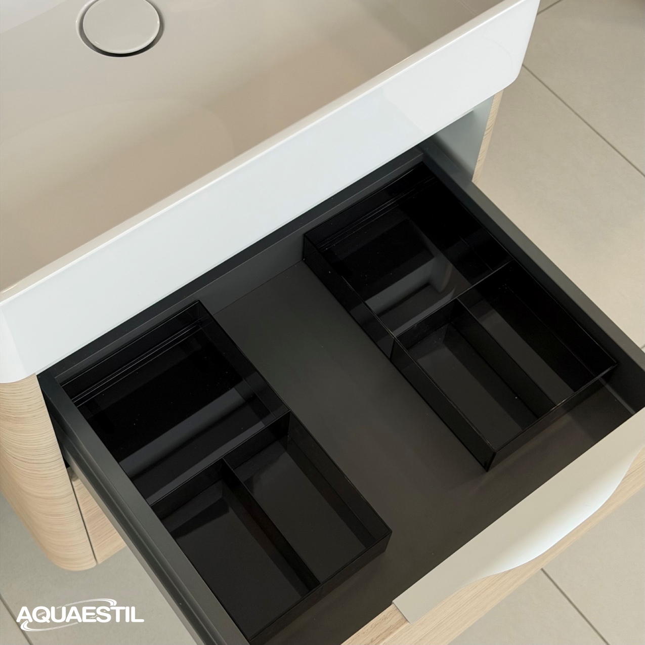 I bordi arrotondati e i dettagli discreti della linea Ardea creano un’armonia unica di elementi dal design che esprime un’eleganza senza tempo e una funzionalità fluida. Il lavabo spazioso dona una piacevole sensazione di leggerezza e offre ampio spazio per riporre gli oggetti, mentre ulteriore spazio è garantito dal sifone a basso profilo, che non richiede tagli nel cassetto superiore, e dall’organizzatore inclusi di serie nei mobili basi Ardea. Le basi mobili sono dotate di serie di un sifone a basso profilo e di un organizzatore per cassetto.