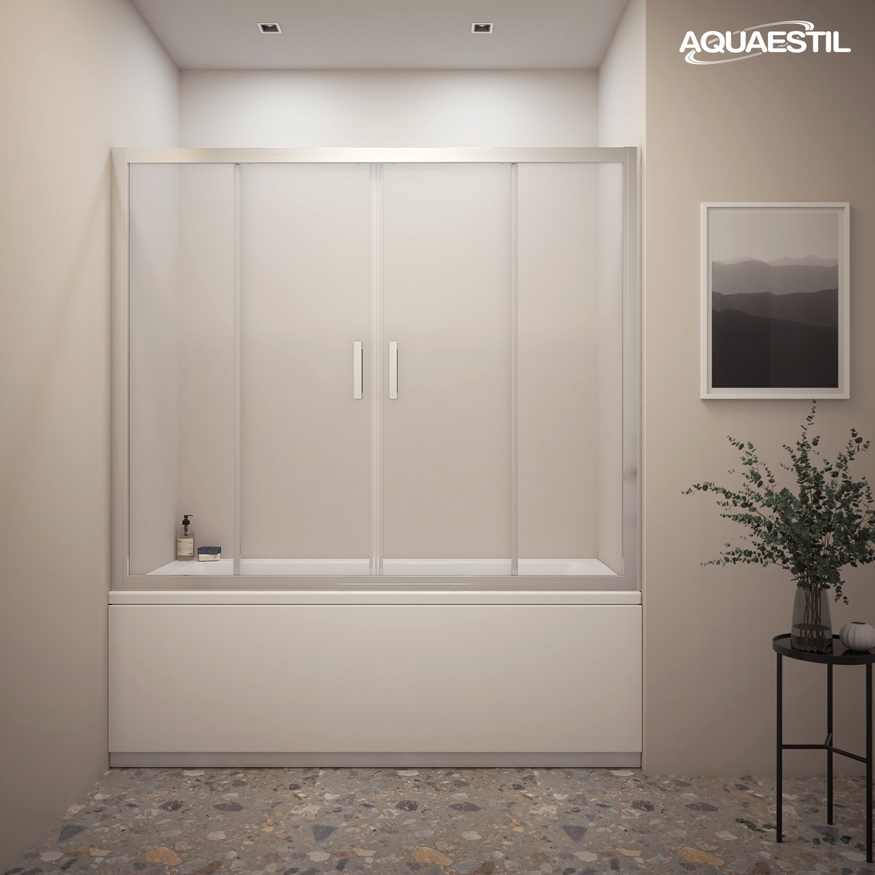 Porta scorrevole doppia, ottimi profili e completa protezione dagli spruzzi dell’acqua: ecco le caratteristiche di questa parete destinata alle vasche da bagno più grandi, chiuse su tre lati in una nicchia.