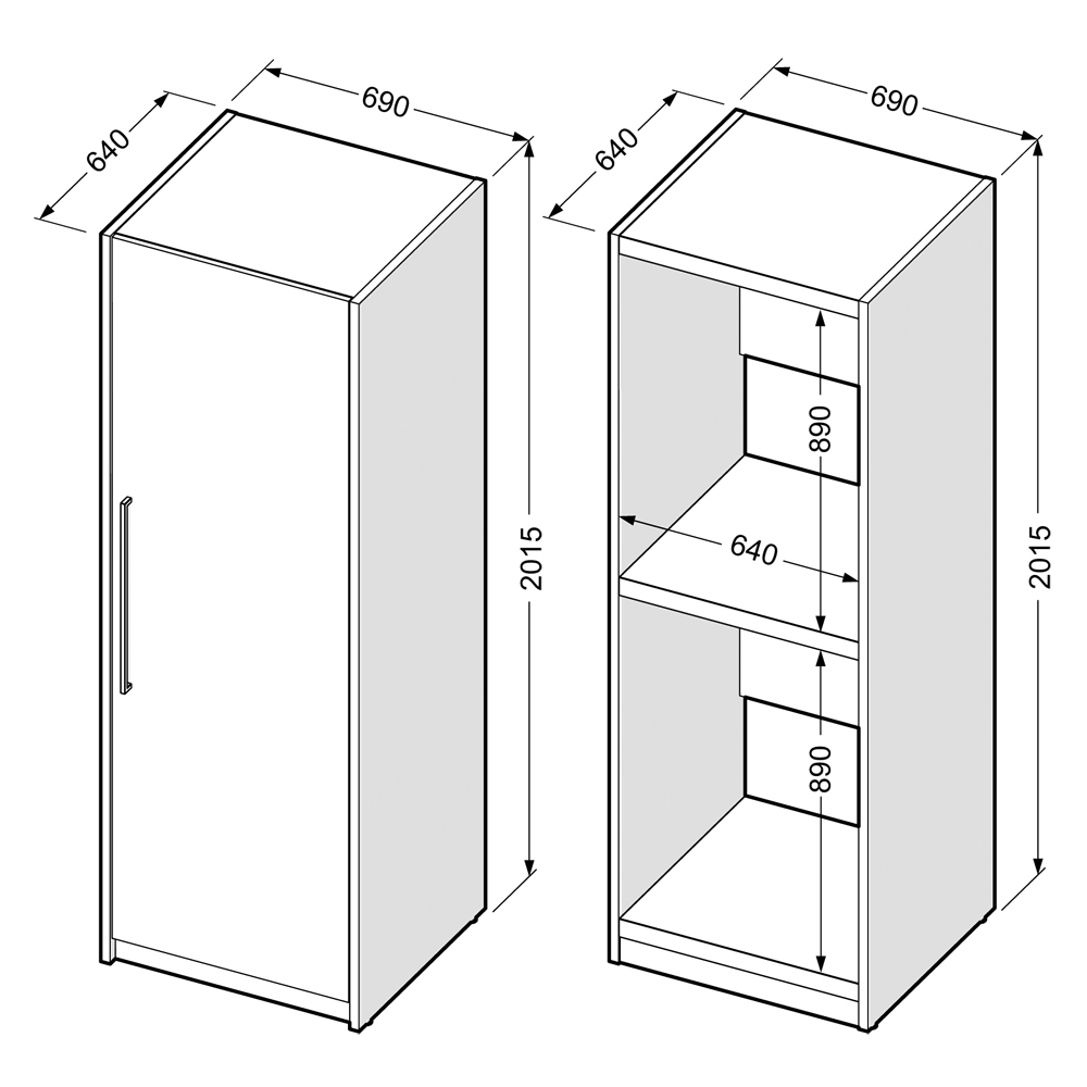 Gli armadi sono realizzati con materiali di qualità e sono progettati per riporre elettrodomestici/dispositivi più pesanti come una lavatrice o oggetti domestici ingombranti come assi da stiro, aspirapolvere e prodotti per la cura della casa. Tutti gli elementi sono assemblati in fabbrica e pronti per l'uso subito dopo l'installazione nello spazio.