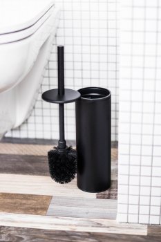 WC ščetka s priloženim držalom iz medenine v kromiranem, belem mat ali črnem mat učinku. Lahko se vgradi na steno ali pa se uporablja kot samostoječi element na tleh.