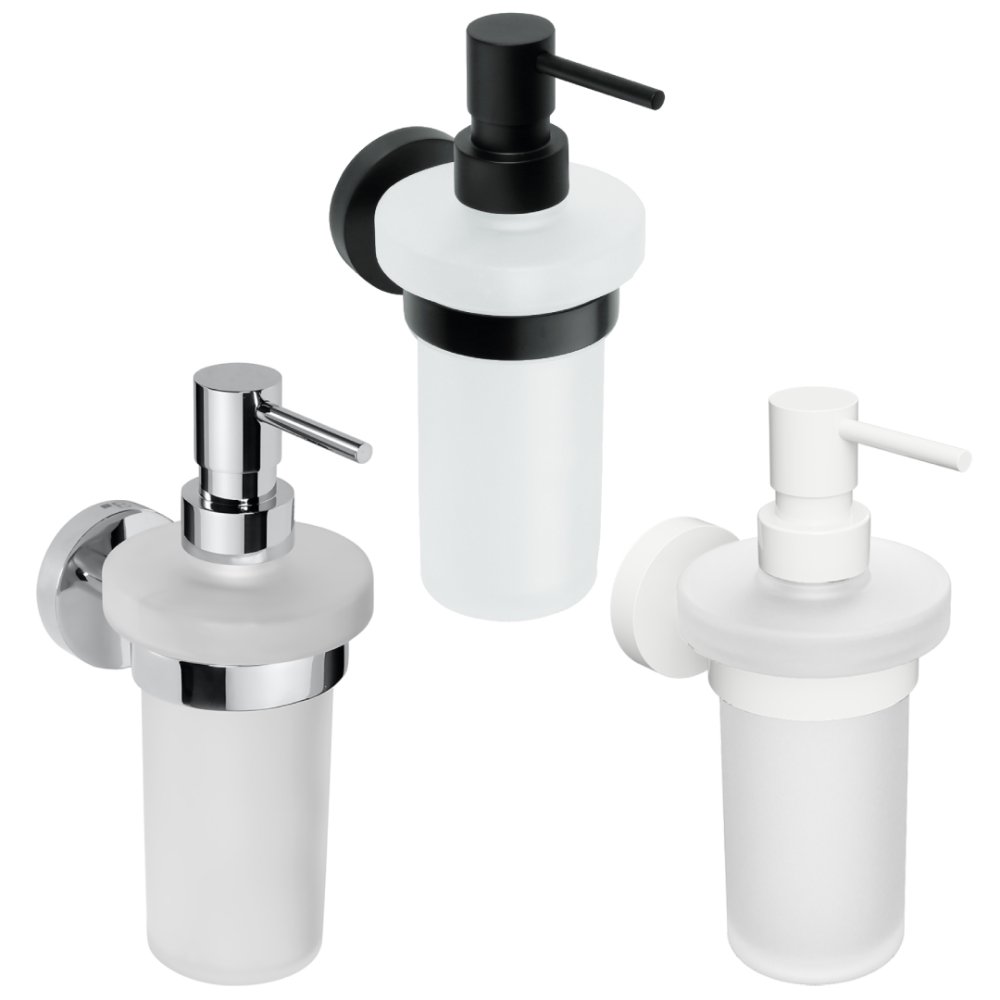 Ta eleganten kopalniški dodatek je sestavljen iz medeninastega držala kromirani, beli mat ali črni mat barvi in dozirnika tekočega mila iz satenastega stekla. Prostornina dozirnika je 230 mm.