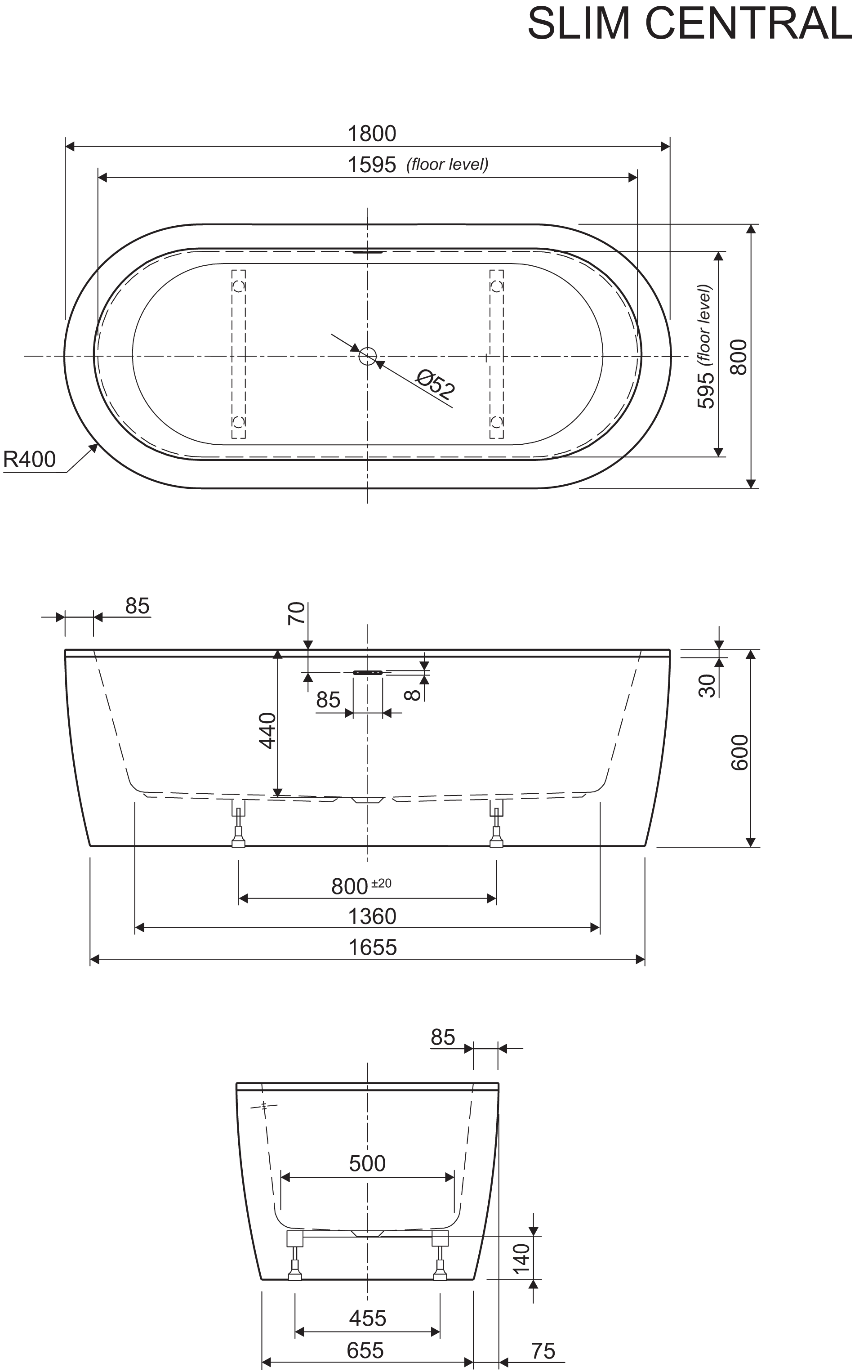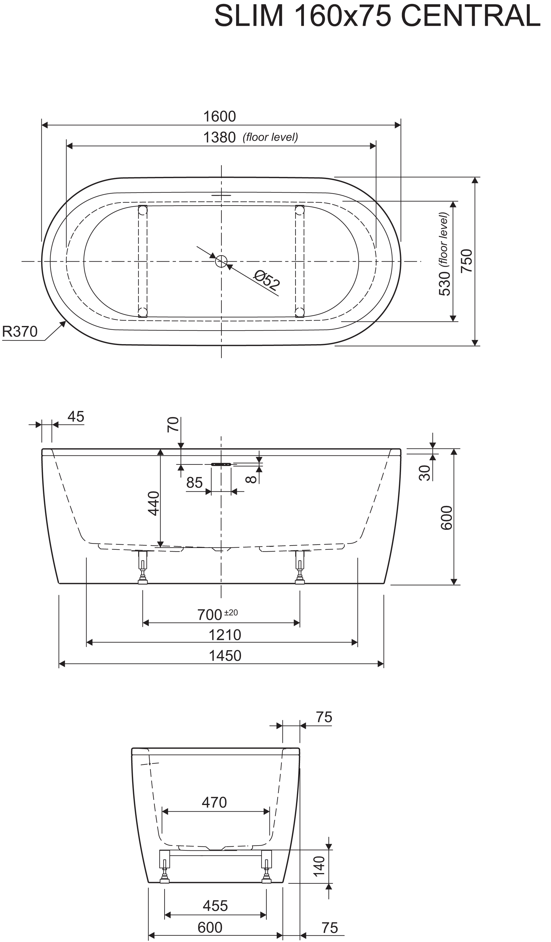 Samostoječo kad Slim Black Central odlikujejo elegantna ovalna oblika, slot preliv in črna mat obloga, ki je tovarniško obdelana s plastjo proti prstnim odtisom. Dobavljena je s tovarniško nameščeno in fiksirano oblogo, odlivno-prelivno garnituro s klik-klak ventilom in gibljivo cevjo za namestitev na odvod. Pri vgradnji zadošča, da se gibljivo cev spoji na odvod, kad učvrsti v tla, natoči vodo in že je pripravljena za kopanje!