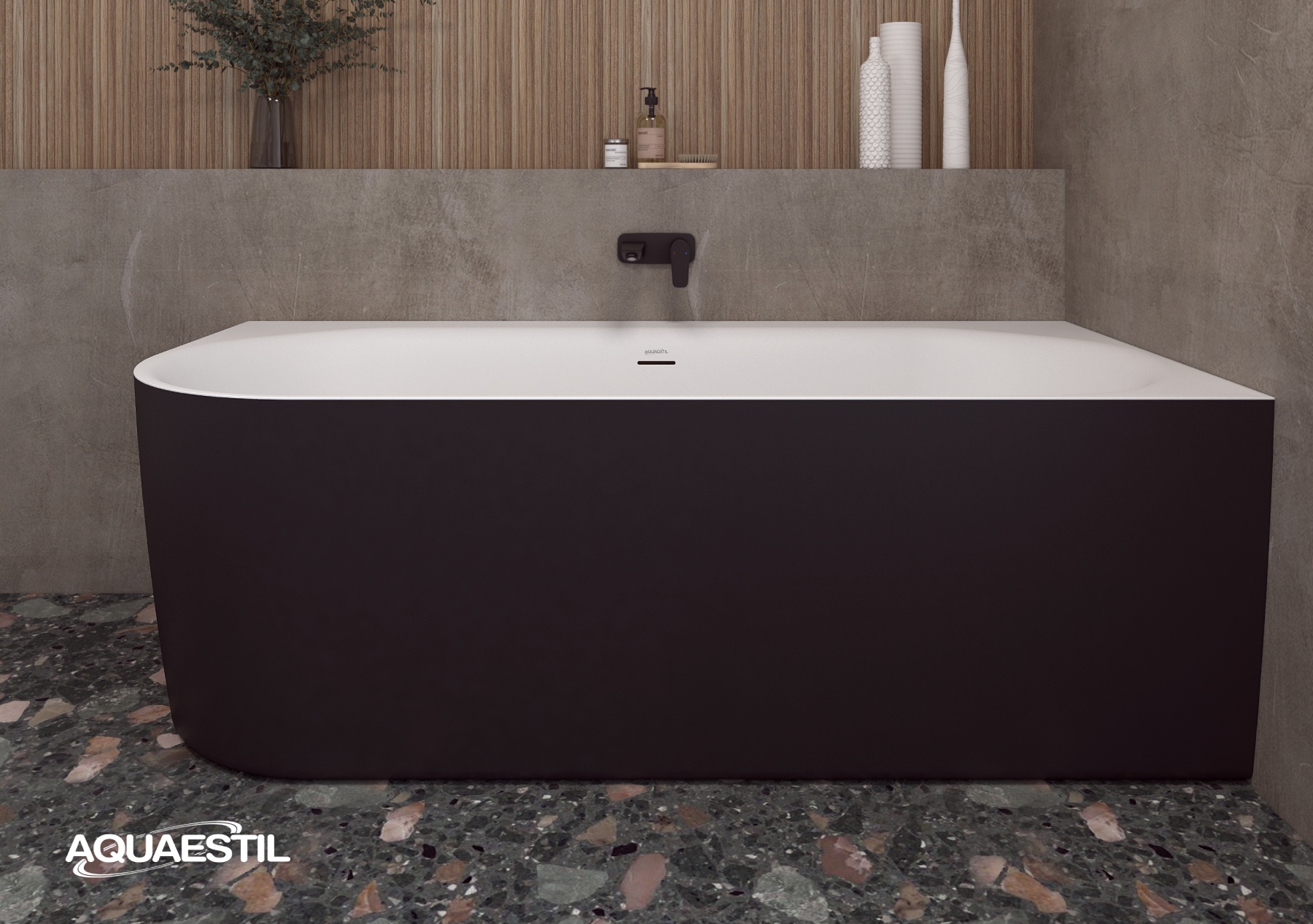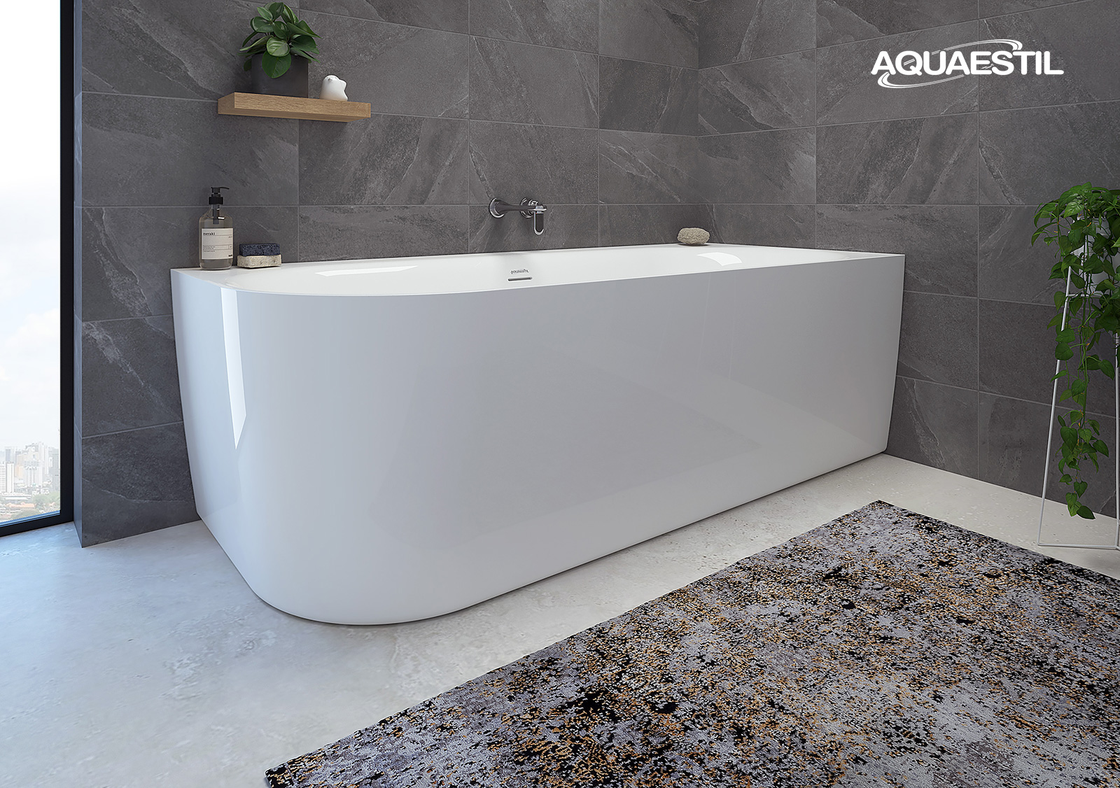 - Kopalna kad se dostavi pripravljena za namestitev s nevidno spojeno oblogo, tovarniški vgrajenim podnožjem in integriranim odtočno-prelivnim kompletom.