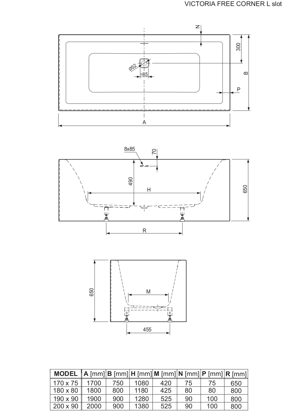 Victoria Free je elegantna in moderna pravokotna kopalna kad s tovarniško vgrajenim podnožjem in nevidno spojeno oblogo. Kopalna kad je dostavljena s tovarniško vgrajenim podnožjem in integriranim odtočno-prelivnim kompletom z "slot" prelivom in "klik-klak" sifonskim ventilom.
