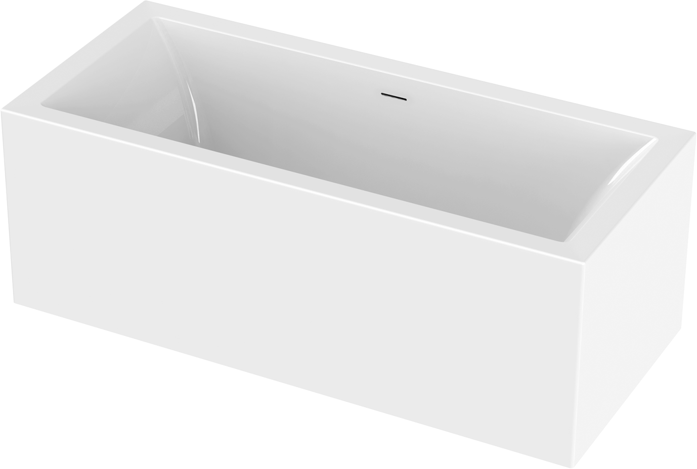 - Kopalna kad se dostavi pripravljena za namestitev s nevidno spojeno oblogo, tovarniški vgrajenim podnožjem in integriranim odtočno-prelivnim kompletom.