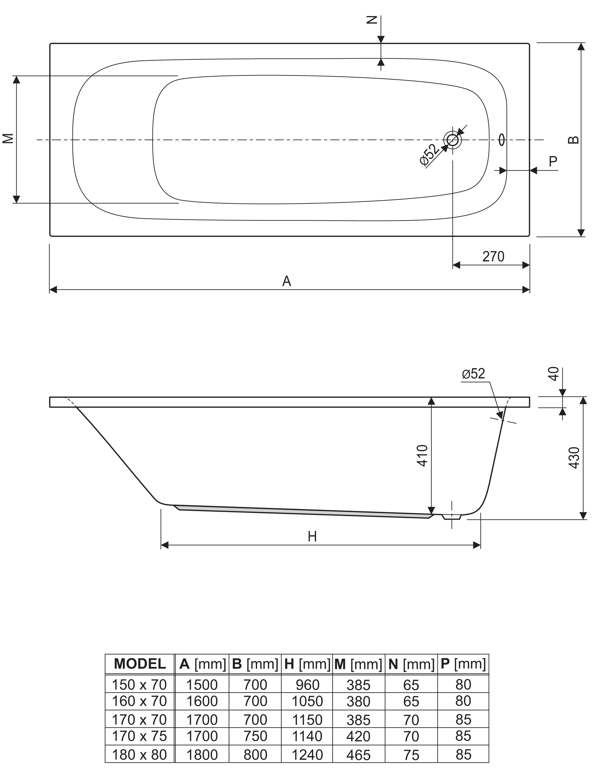 - kopalne kadi brez masažnega sistema se dobavijo brez prelivno-odtočne garniture