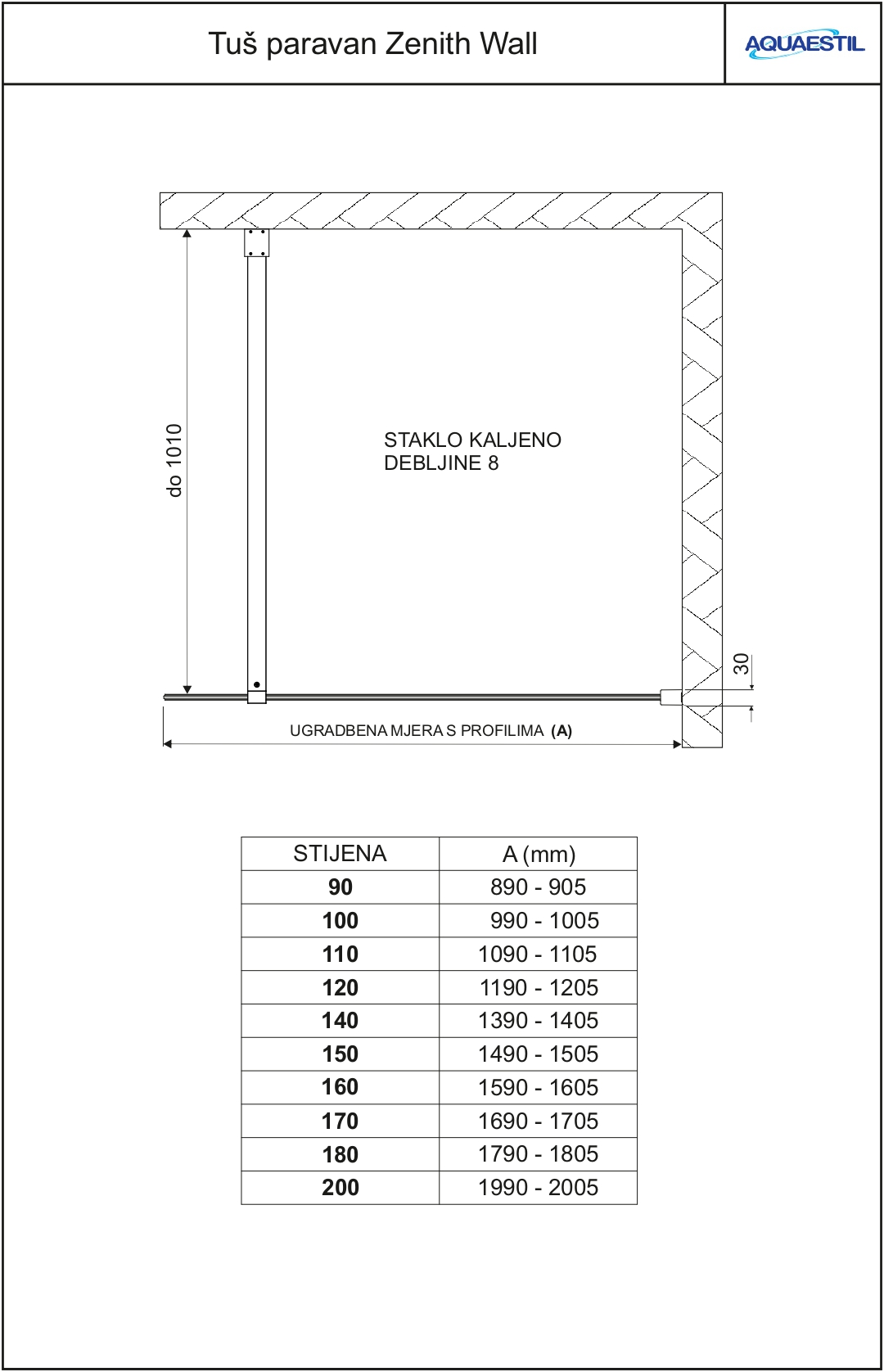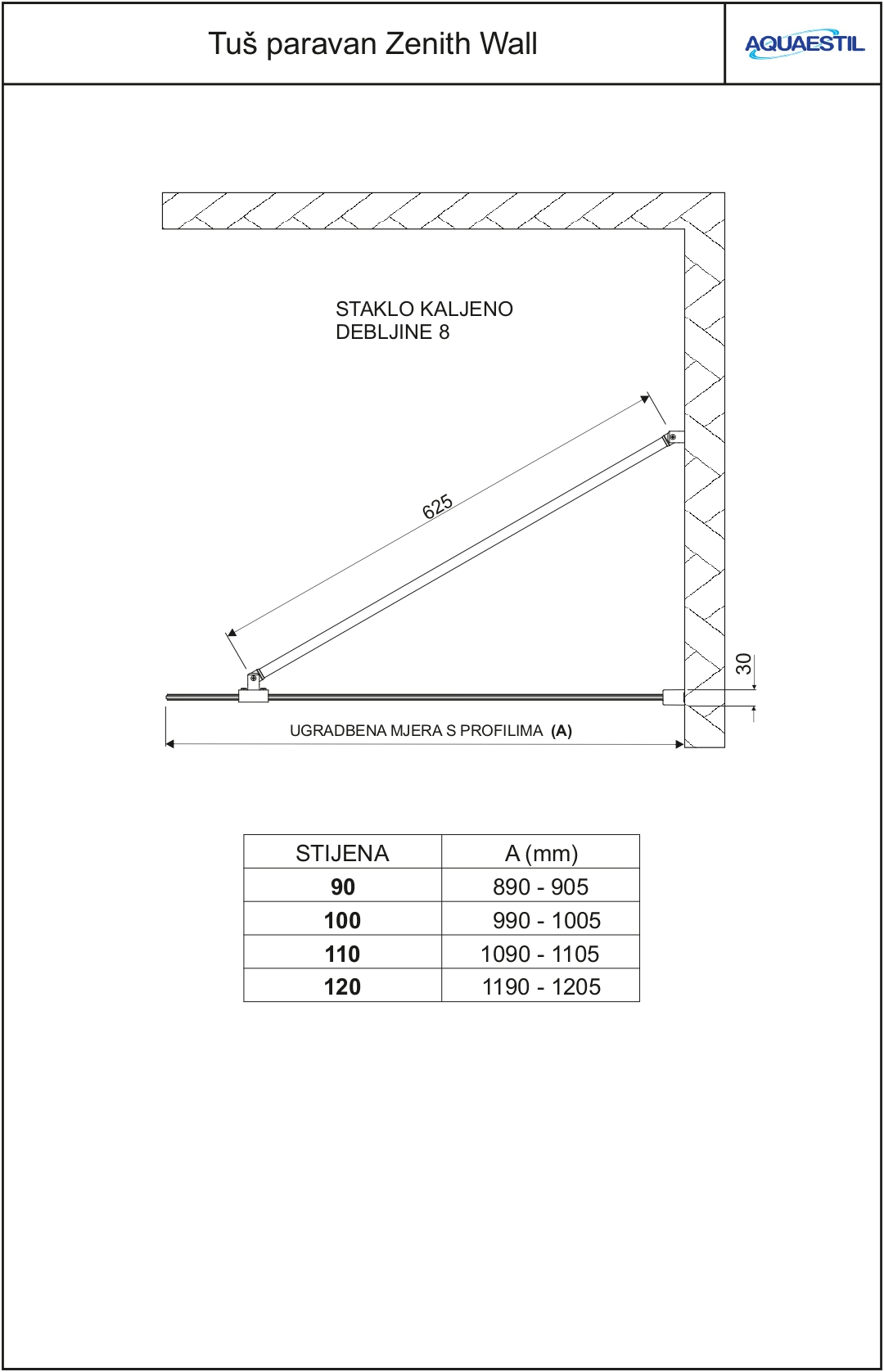 - Tuš paravan Zenith Wall je na voljo tudi v različici s kotnim fiksatorjem v razponu dimenzij od 90 do 120 cm*