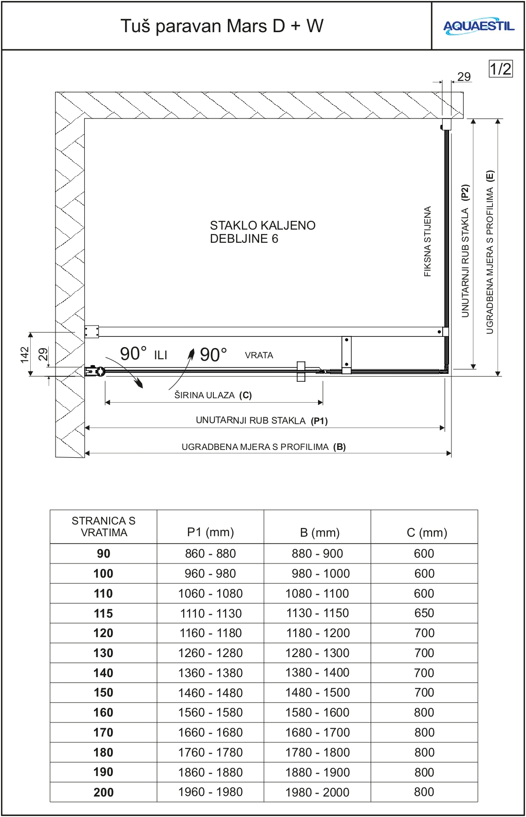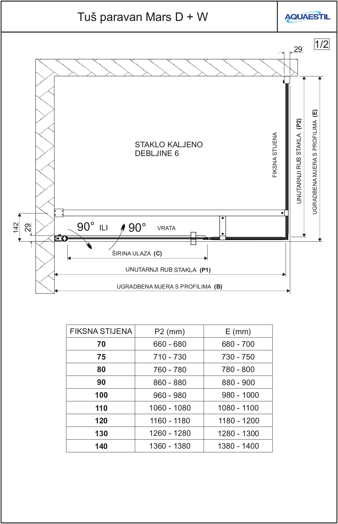 Mars D+W je kvaliteten paravan, sestavljen iz fiksne stene W in vrat D (le ta so sestavljena iz fiksnega in gibljivega dela). Profili so elegantni in v preseku okrogli. Na steklo debeline 6 mm je že tovarniško nanešen nano premaz. Pri naročanju paravana z reliefnim steklom je potrebno definirati smer odpiranja vrat (leva ali desna). Pri sami montaži paravana je mogoče določiti, ali se bodo vrata odpirala na noter ali ven.