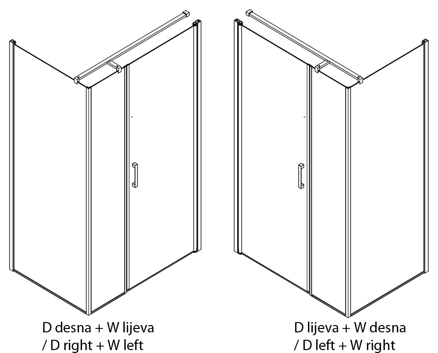 - Če se paravan postavi na ploščice, ne pa na tuš kad, je treba ob naročilu dostaviti načrt s točnimi dimenzijami prostora za tuširanje.