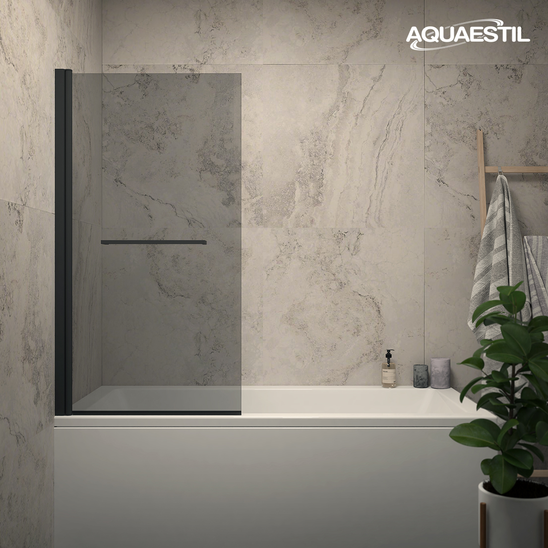 Paravan namenjen modernim pravokotnim kopalnim kadem z vgrajenim držalom za brisače. Možnost prekrivanja v obe smeri. Na voljo možnosti srebrnih, mat črnih ali mat belih profilov ter prozornega ali sivega kaljenega stekla.