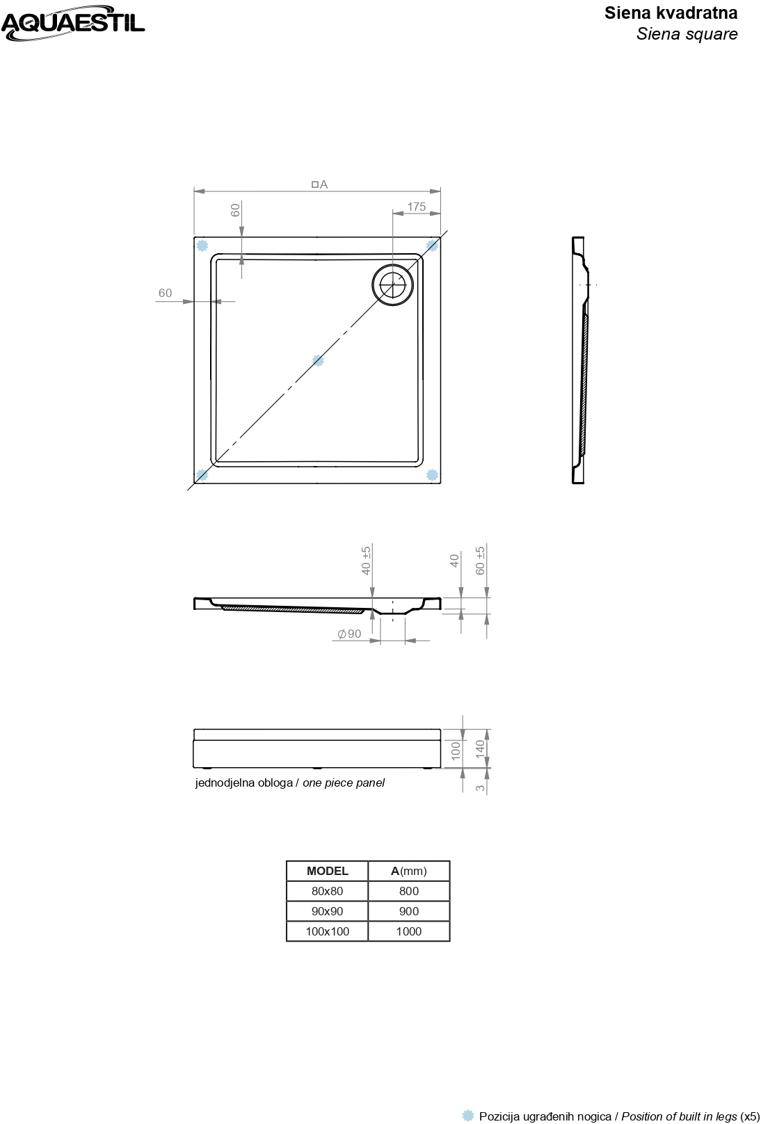 • tuš kadi se ne dobavijo s sifonom (potrebno ga je naročiti posebej)