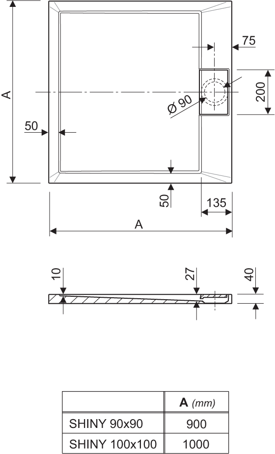 Tuš kad Shiny je prepoznavna po posebej izvedenem pokrovu sifona in modernih ter ostrih linijah. Tuš kadi iz litega marmorja se ponašajo z maksimalno čvrstostjo in popolnimi linijami, ki jih je možno izvesti zahvaljujoč naprednim svojstvom tega materiala. Površina teh tuš kadi je sijajna in zelo preprosta za vsakodnevno čiščenje ter vzdrževanje.