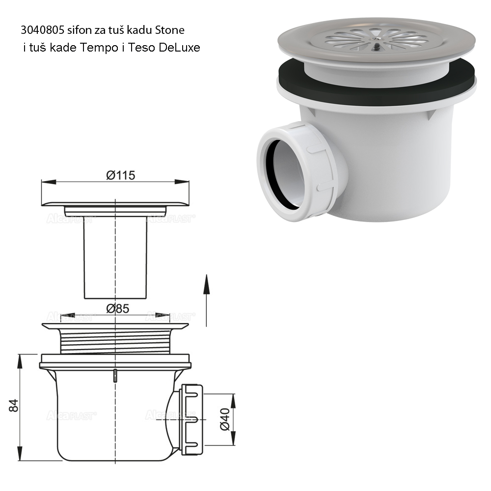 Pomembno je paziti na premer in višino sifona. V rubriki 'Dodatki' so prikazani kompatibilni sifoni za izbrani model tuš kadi.