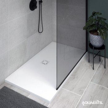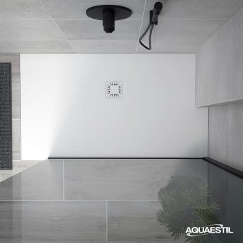 Tuš kadi iz litega marmorja nudijo močan občutek trdne površine in privlačen dizajn ostrih linij. Določene tuš kadi iz litega marmorja Aquaestil so lahko tovarniško ali samostojno razrezane znotraj določenih dimenzij.